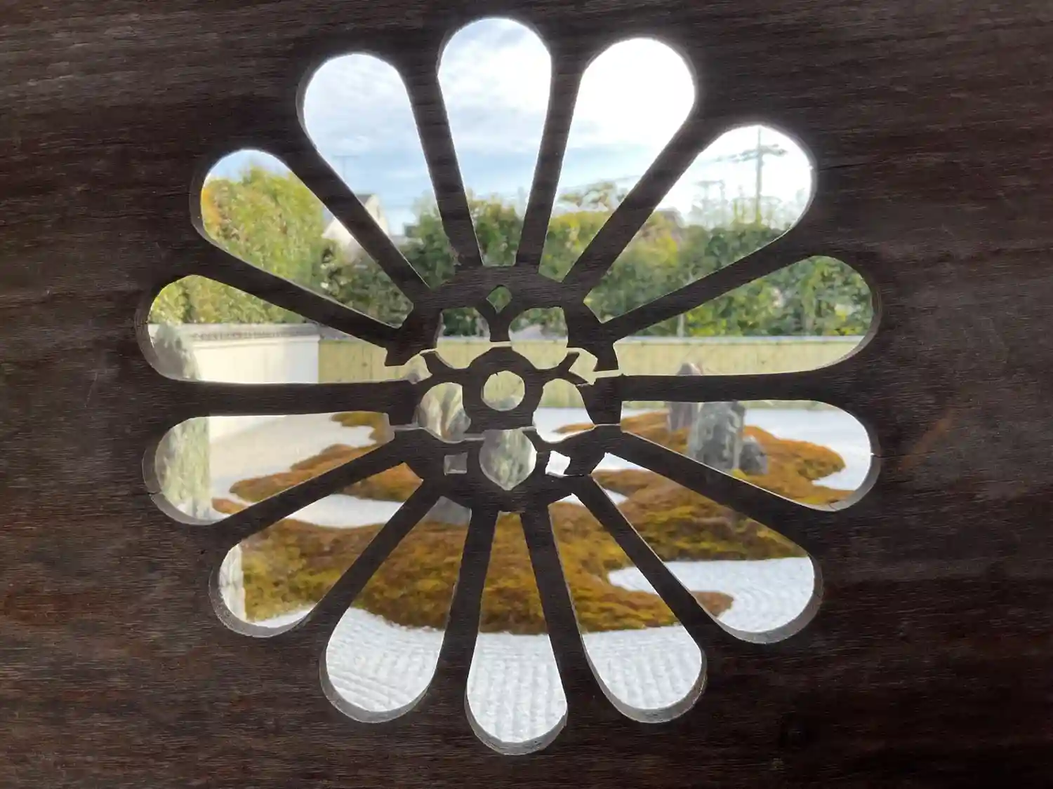 本堂前の「心和の庭」です。 上から見ると「心」という配置になっています。 今回も庭園だけは撮影OKでした。