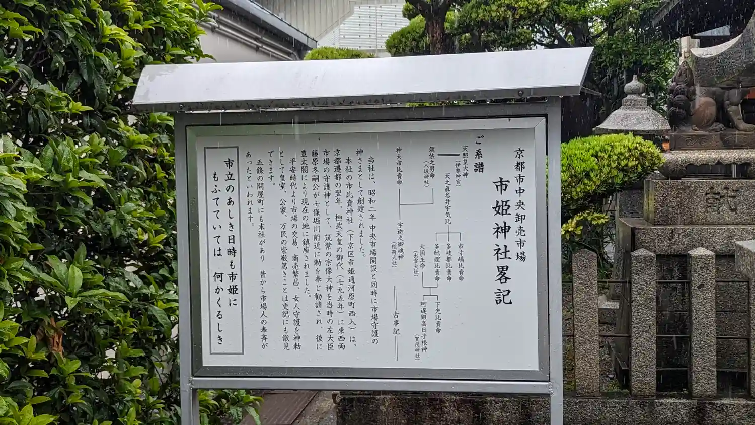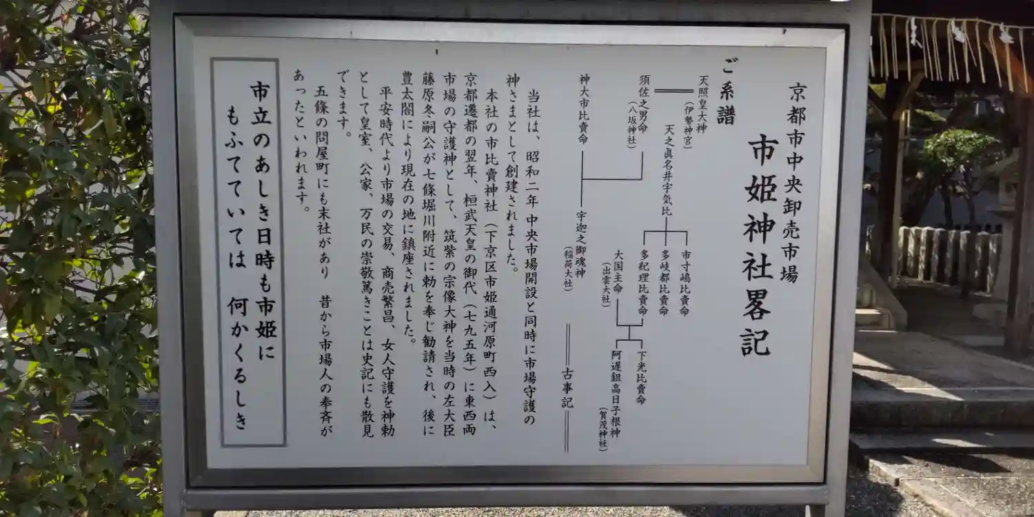 JR梅小路駅から京都中央卸売市場内にある市姫さんへ。五条河原町にある本社・市比賣神社が女性守護の色…
