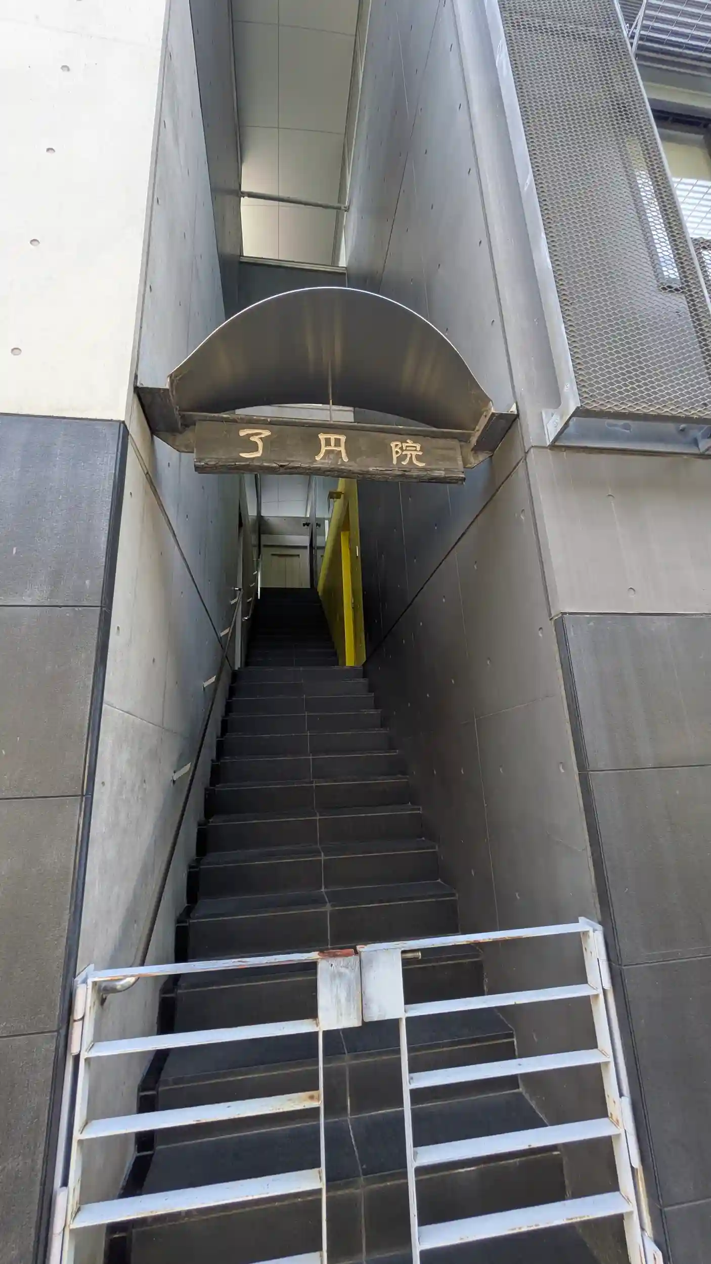 本圀寺塔頭十六坊。唯一のビルディング寺院。やはり京都では見慣れないせいか見落としそうになりました😅近くの真宗寺院はわりとビル寺院があるのですが日蓮宗だと京都府下でも少ないのではないかな?まあ京都市内は建築基準に高さ制限がありますからメリット少ないのもあるんでしょうけど。インターホンを押すと門のある階段ではなく左のドアから奥様がお迎えくださりました。御首題をお願いし拝受😊なんかここだけ異空間な感じですがこれからの寺院は維持管理が経済的に厳しくなって近代建築に舵を切るところが増えるんでしょうねぇ・・・😔