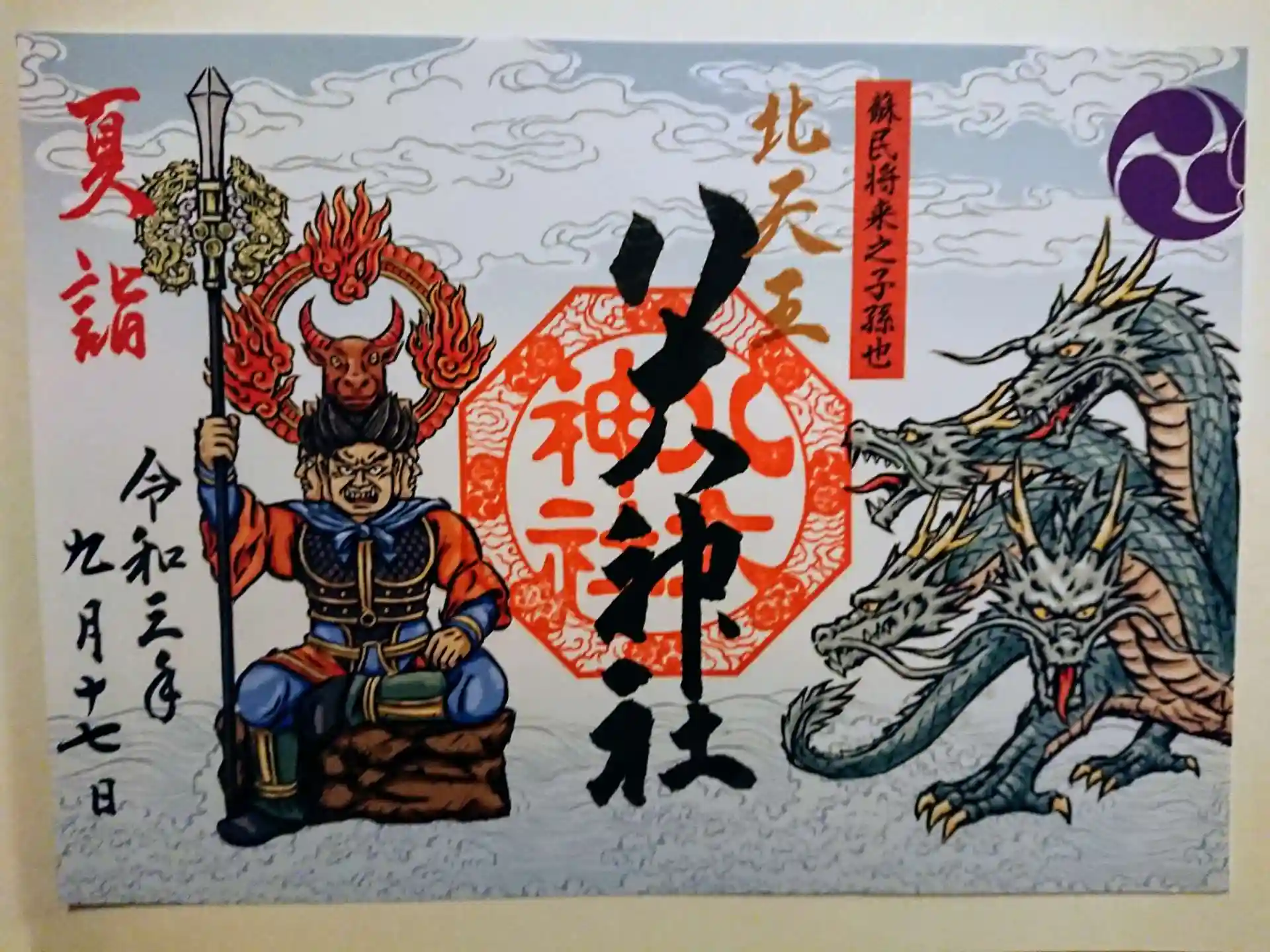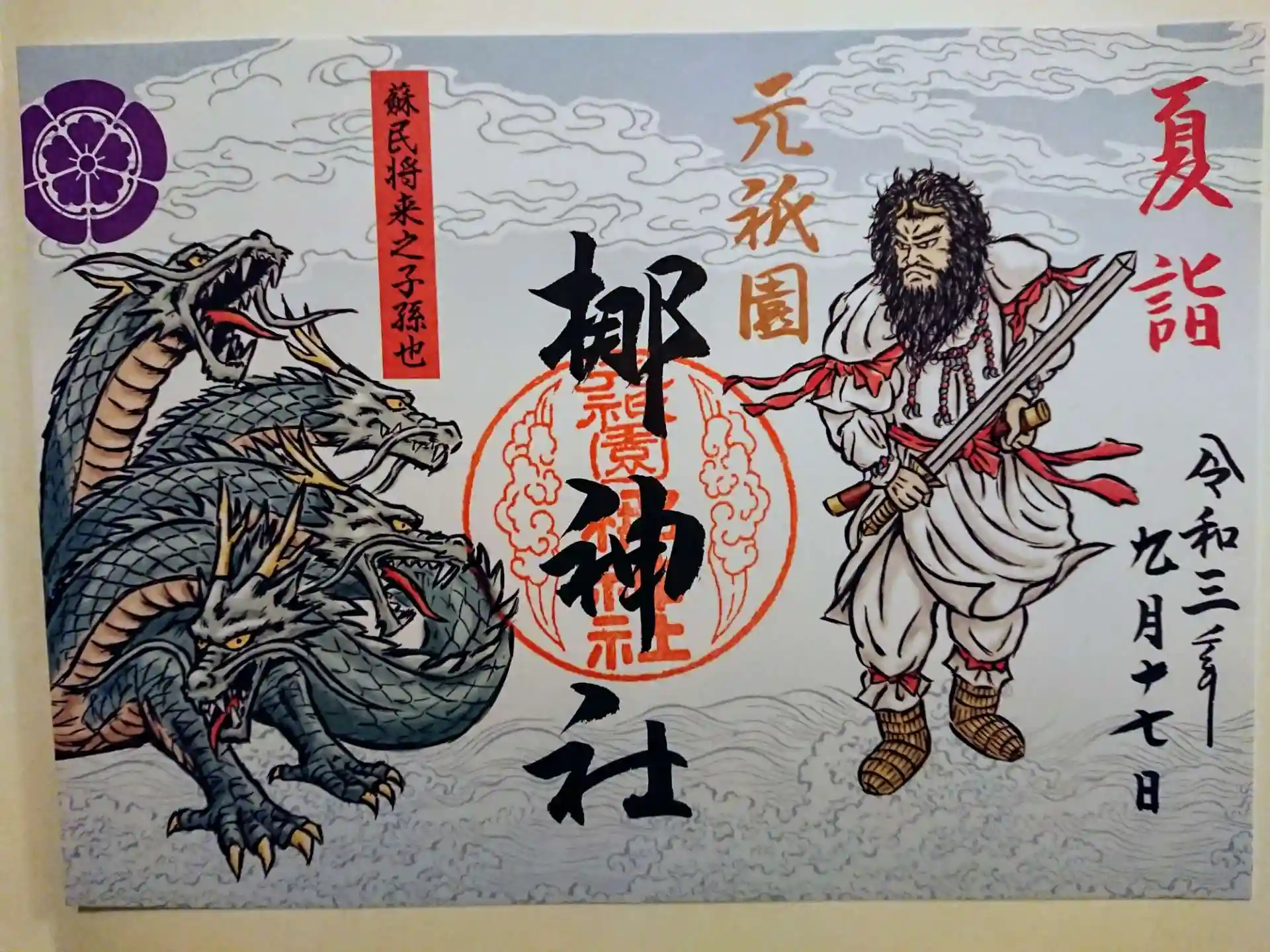 それぞれに御祭神が描かれ、両神社の御朱印を組み合わせると「八岐大蛇(ヤマタノオロチ)」が現れる