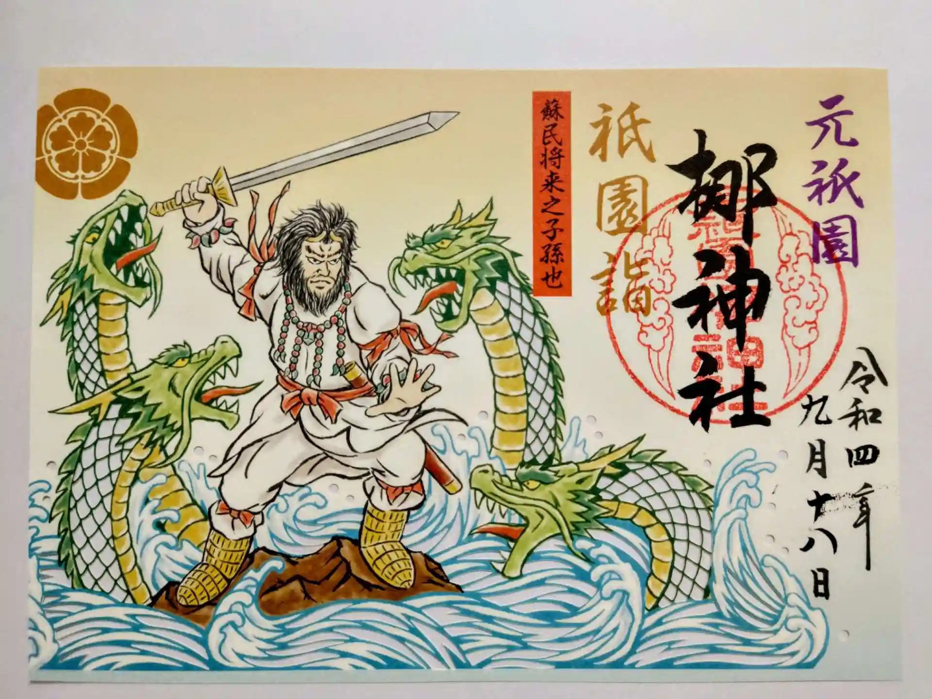 梛神社の御朱印には、御祭神である素戔嗚尊が八岐大蛇を鎮める様子が描かれています。