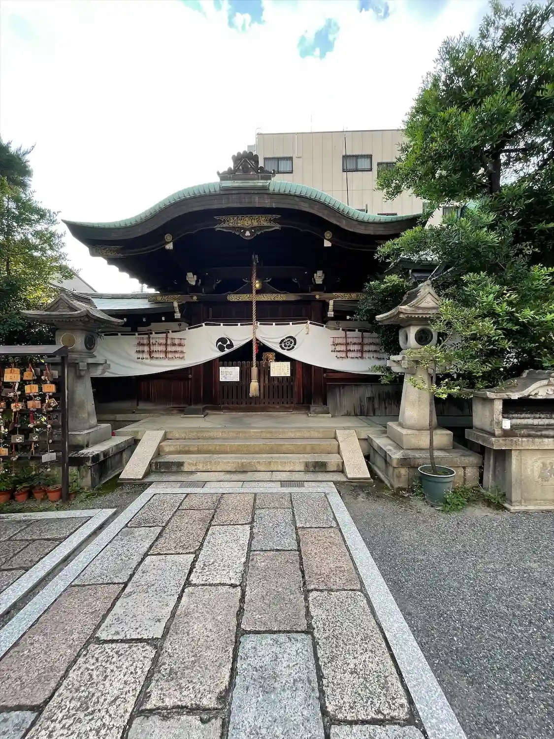 京都駅からバスで向かい、壬生寺道で下車したすぐのところにある神社です。