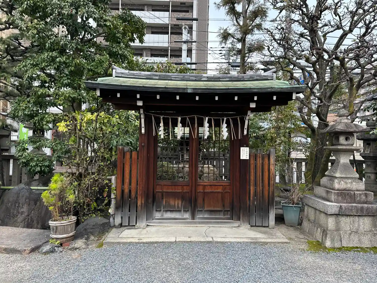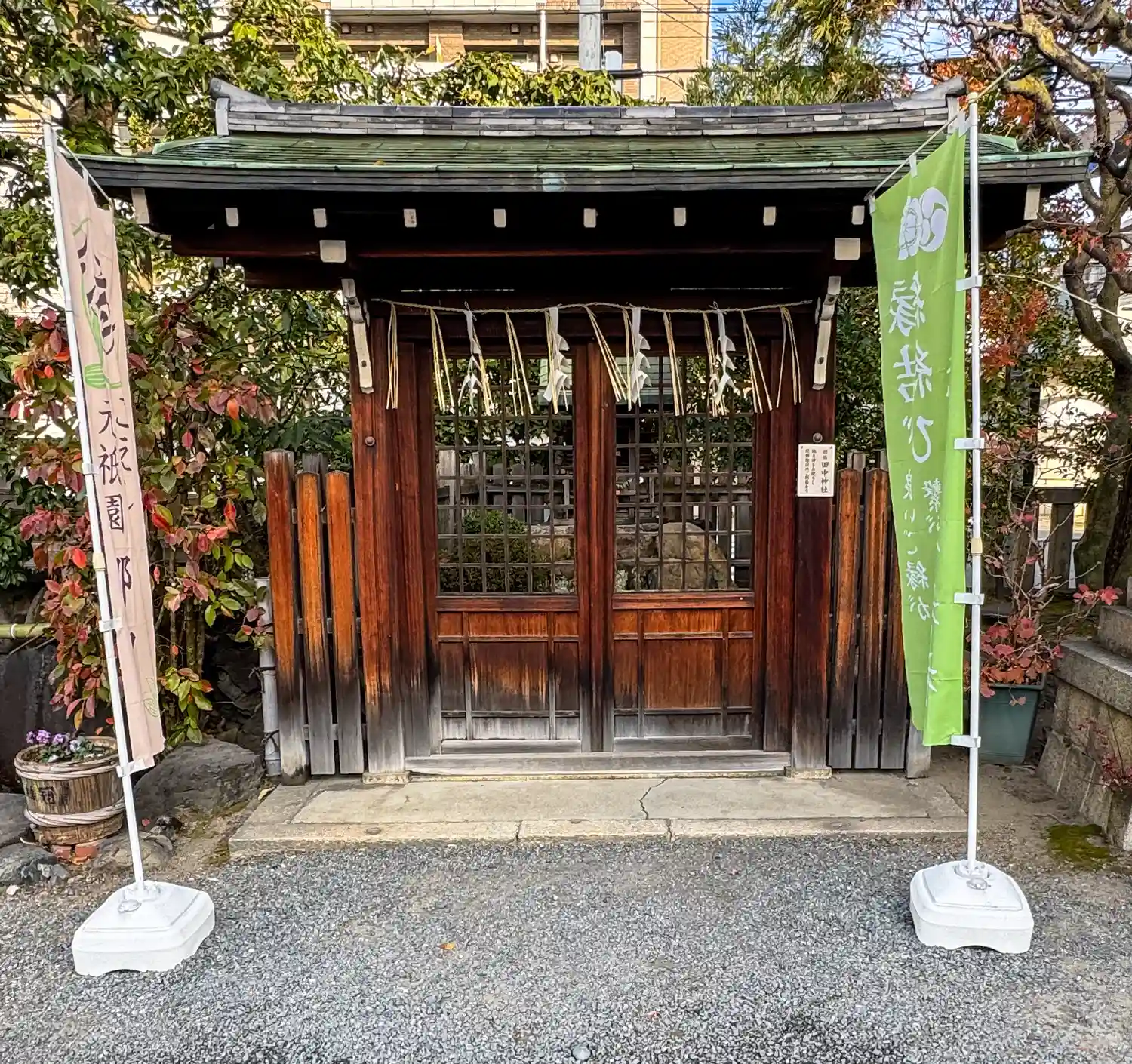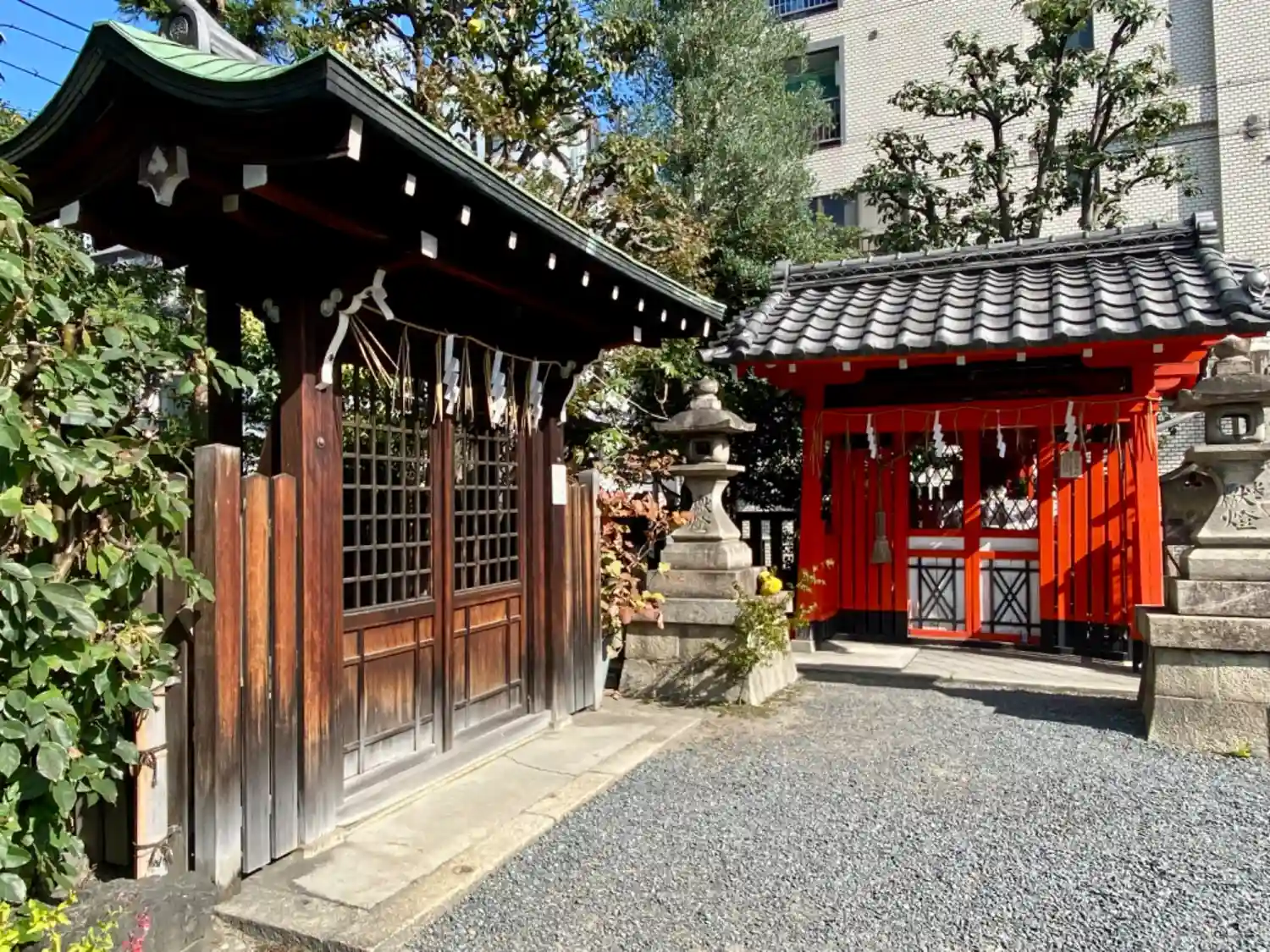 壬生寺の近くにありました。梛神社と隼神社の社殿が隣り合っていました。