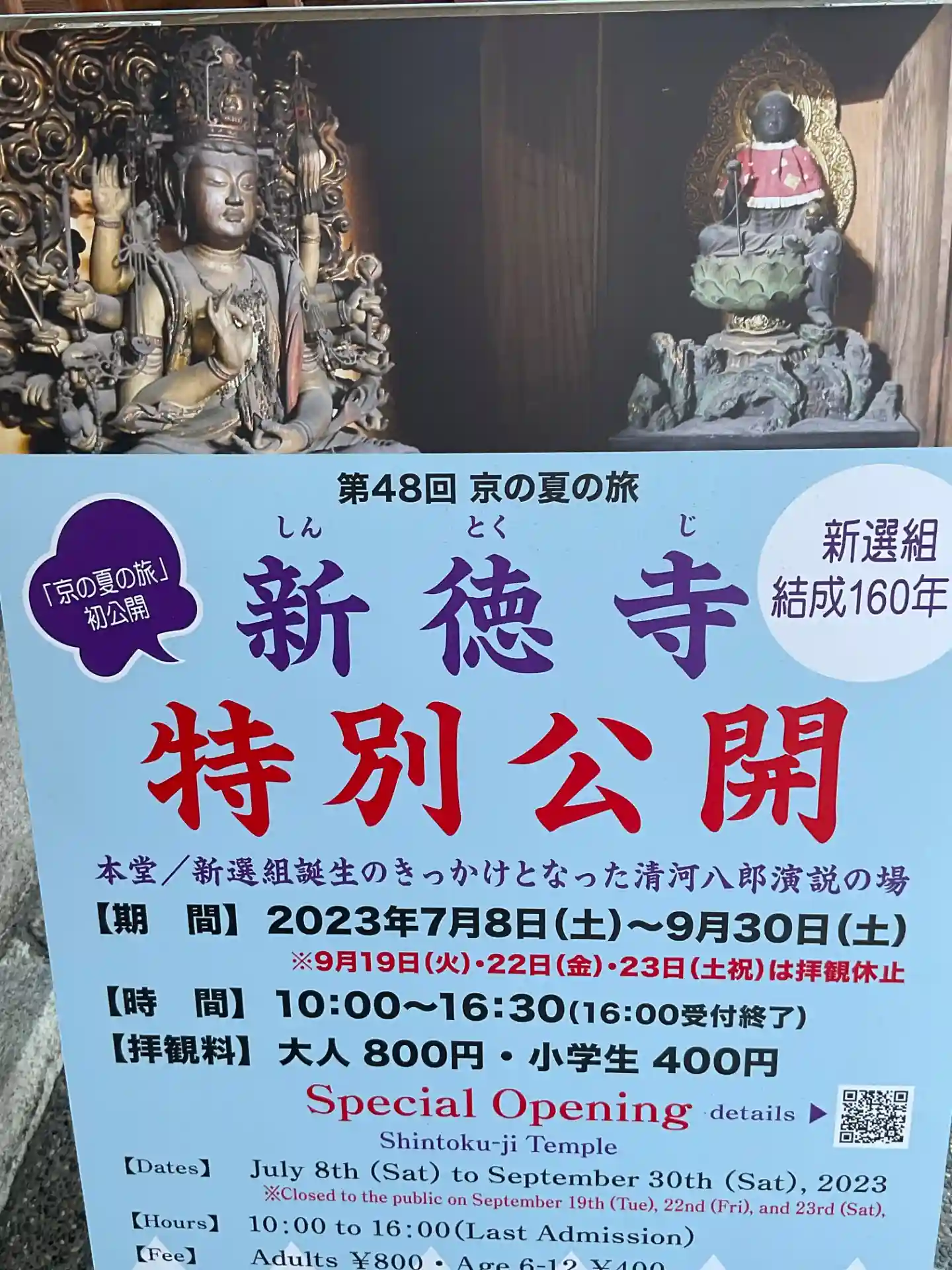 京の夏の旅特別公開で開いていたので参拝。新選組縁の地なのだからかこの界隈は若い子の参拝も多いようで…