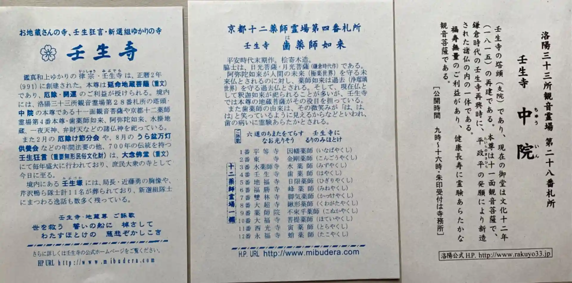 京都十二薬師霊場第四番礼所本尊「歯薬師如来」洛陽三十三所観音霊場第二十八番札所・中院本尊「十一面観音菩薩」
