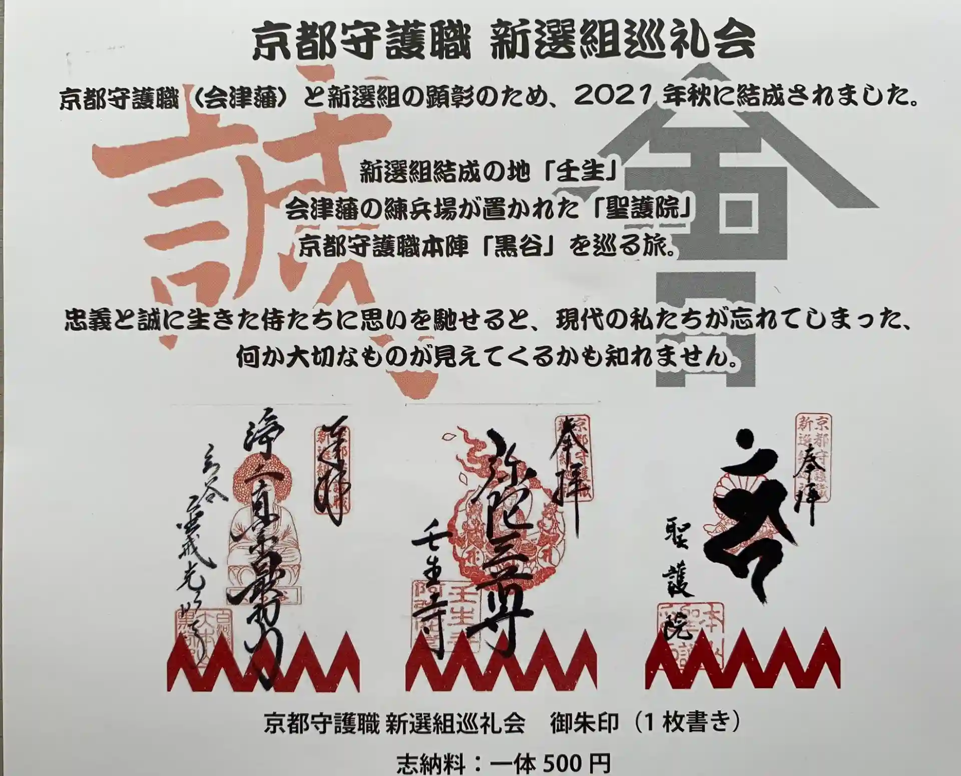 今回はたまたま行きたかった、黒谷さん、聖護院さん、壬生寺さん、回っている途中で京都守護職新撰組巡礼と気がつきました。
