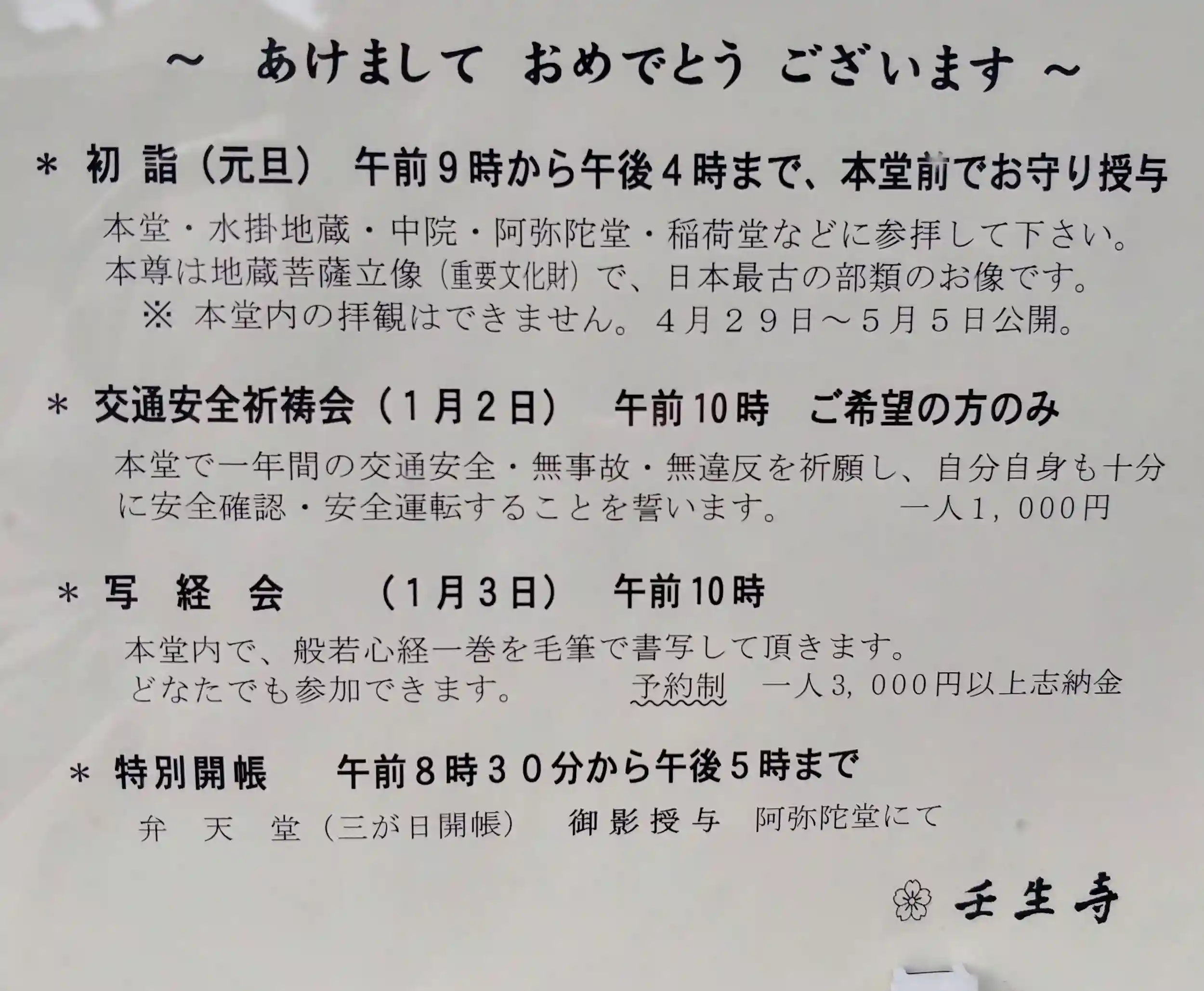 (※なお、正月三ヶ日の間は新徳寺にはお参りいただけません。その間の御朱印は元祇園梛神社にて代行いたします)