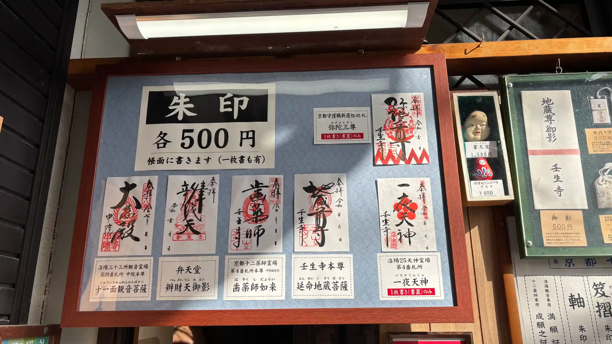 寺務所の受付に通年頒布されている御朱印6種(うち2種は書置き)は過去にいただいており、こちらでは本年限定の書置御朱印を拝受。
