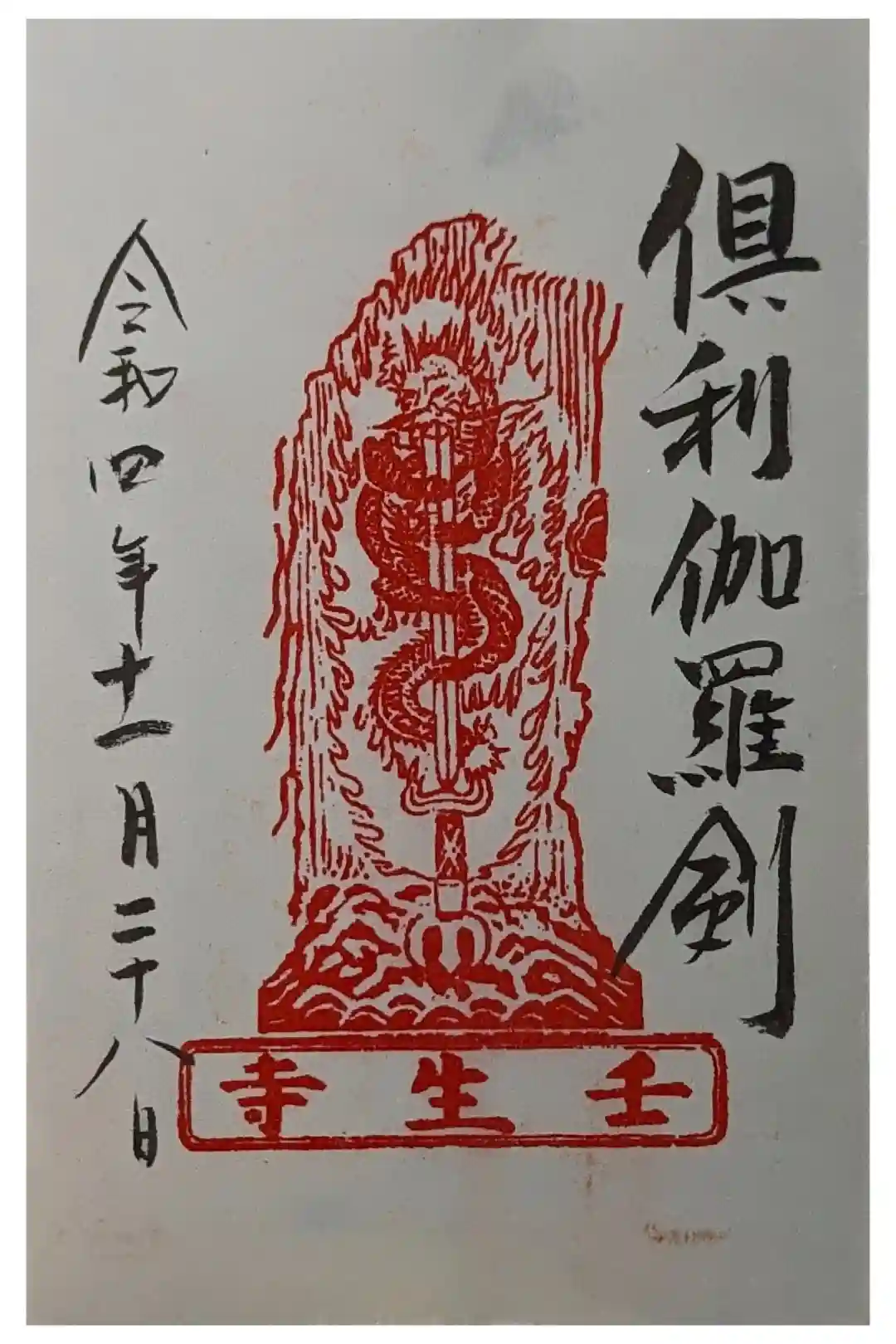 不動明王縁日限定倶利伽羅剣御朱印