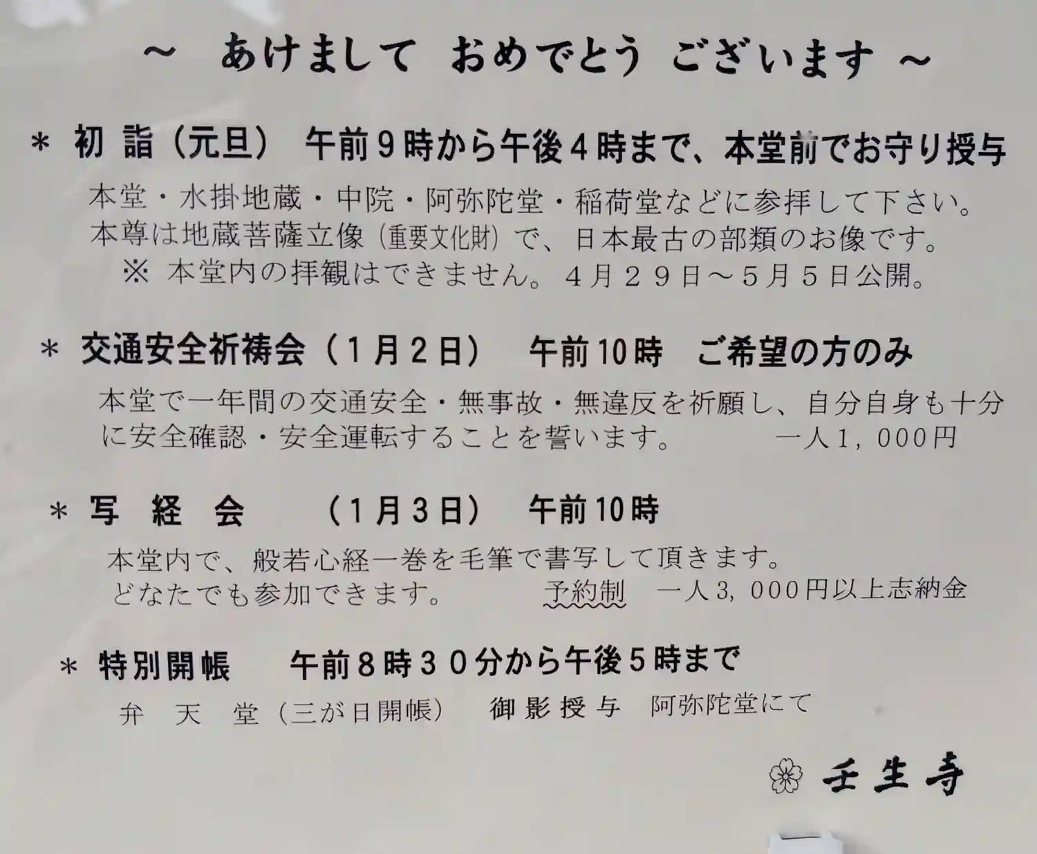 新年1月1日〜31日迄、壬生寺・新徳寺・元祇園梛神社において3社寺合同御朱印「京都壬生開運招福三社…