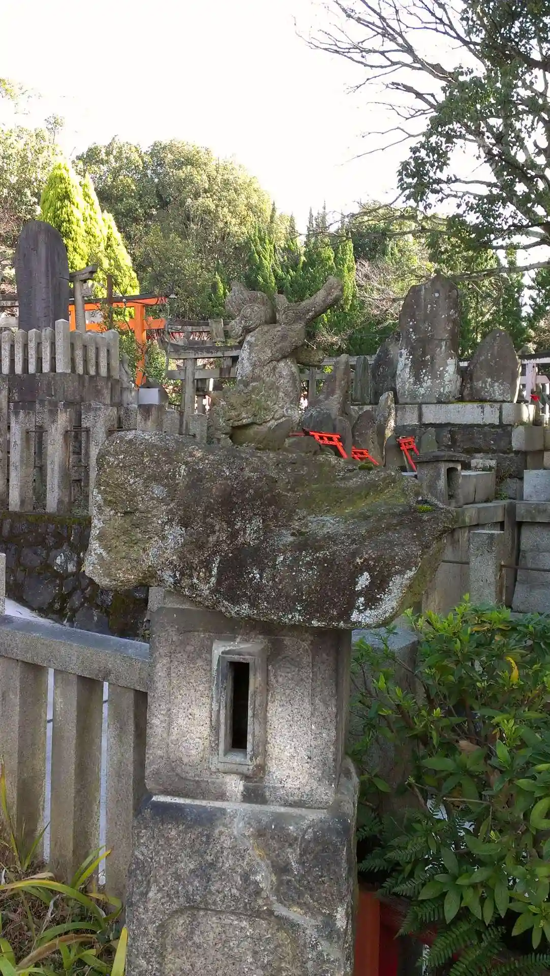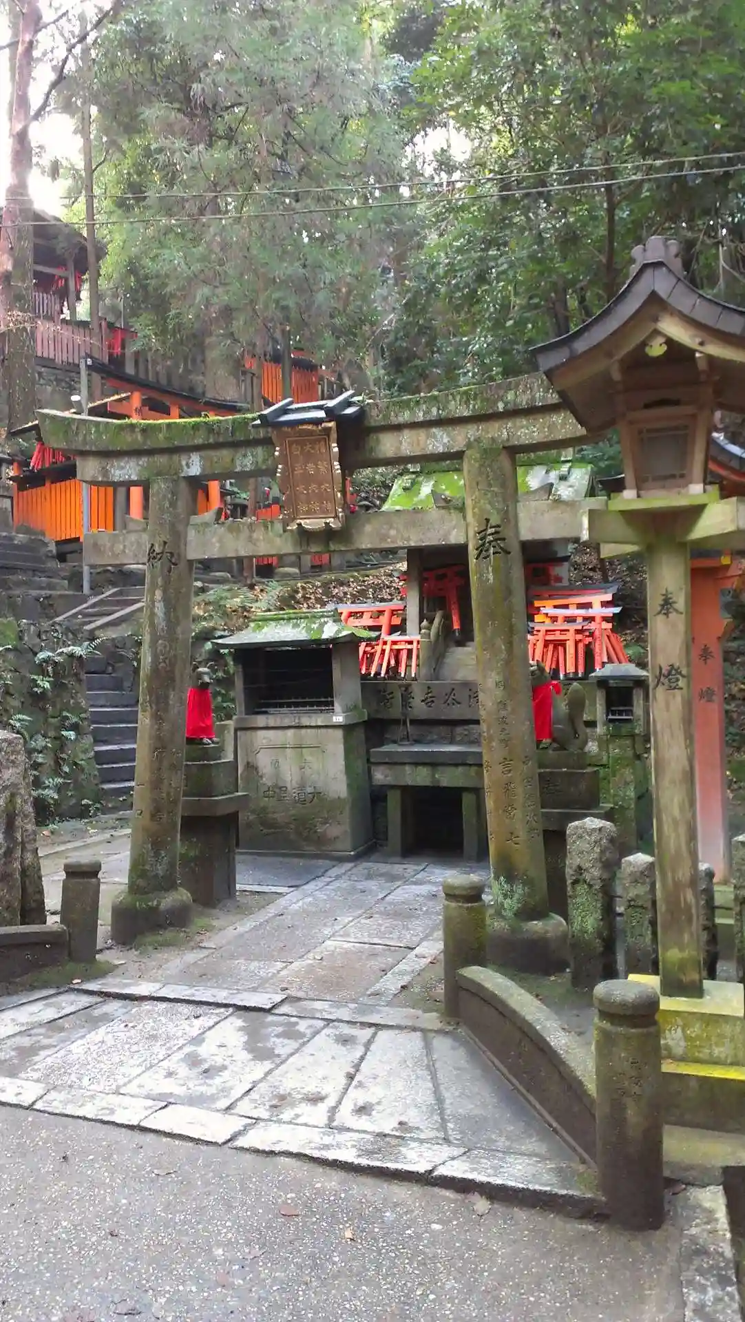 神域となっている稲荷山の山中には、有名な千本鳥居をはじめ、多くの鳥居が立ち並んでいる。