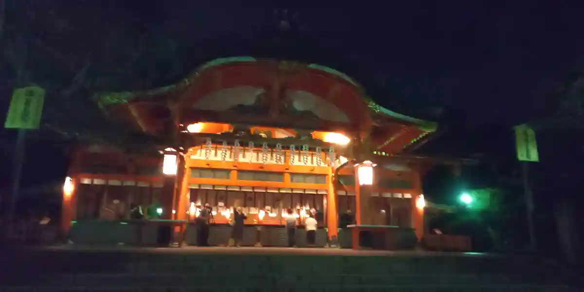 昼の伏見稲荷大社、夜の伏見稲荷大社、また違った顔になります。