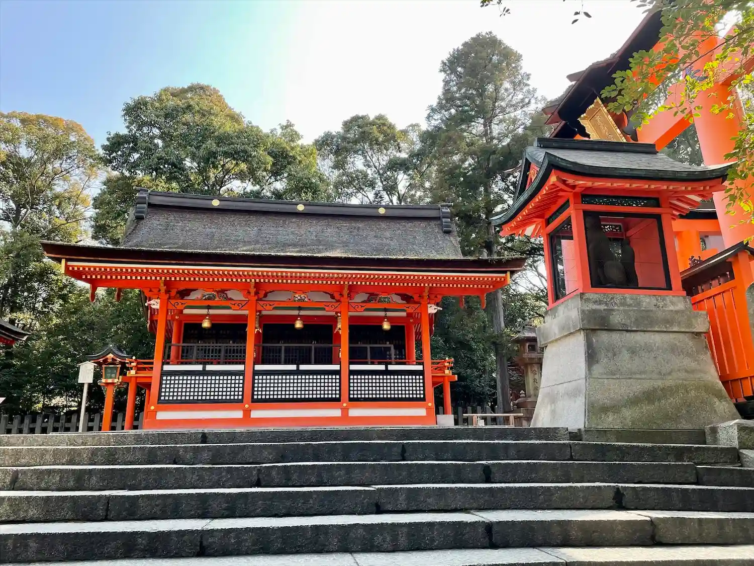 京都盆地東山三十六峰最南端の霊峰稲荷山の西麓に鎮座する稲荷信仰の御本社で、稲荷山全体を神域とする。全国に約3万社あるといわれる稲荷神社の総本社である。
