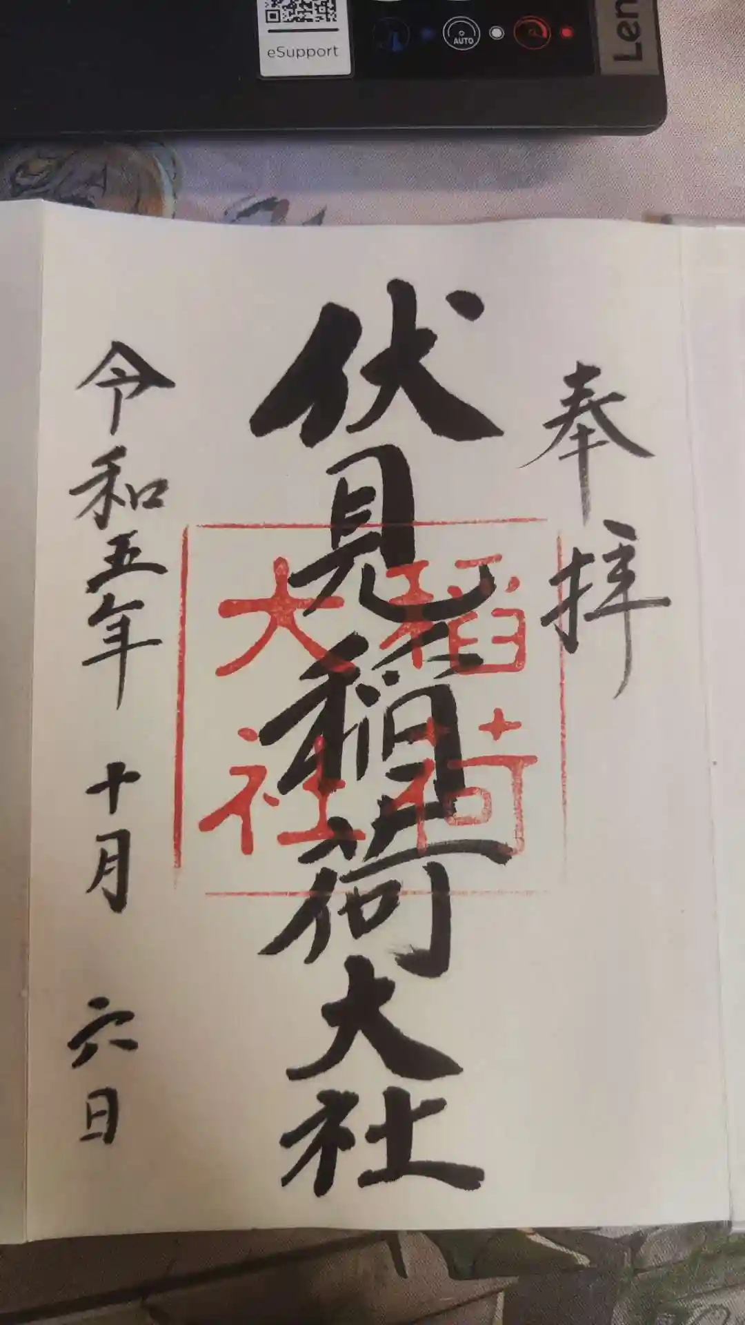 京都に旅行する時、伏見稲荷大社を参りました。一番気に入る神社の御朱印と朱印帳をいただきました。
