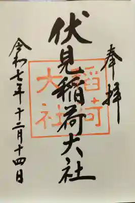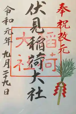 真ん中に「伏見稲荷大社」と墨書きされ、神社印が重ねられています。
