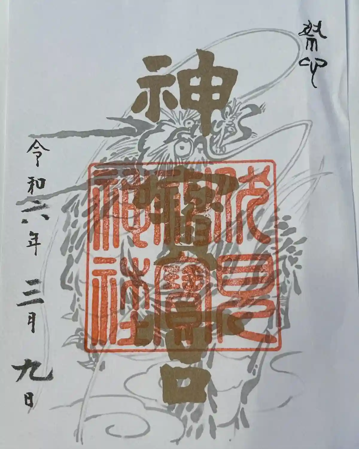 書置きの御朱印。龍が素敵です。