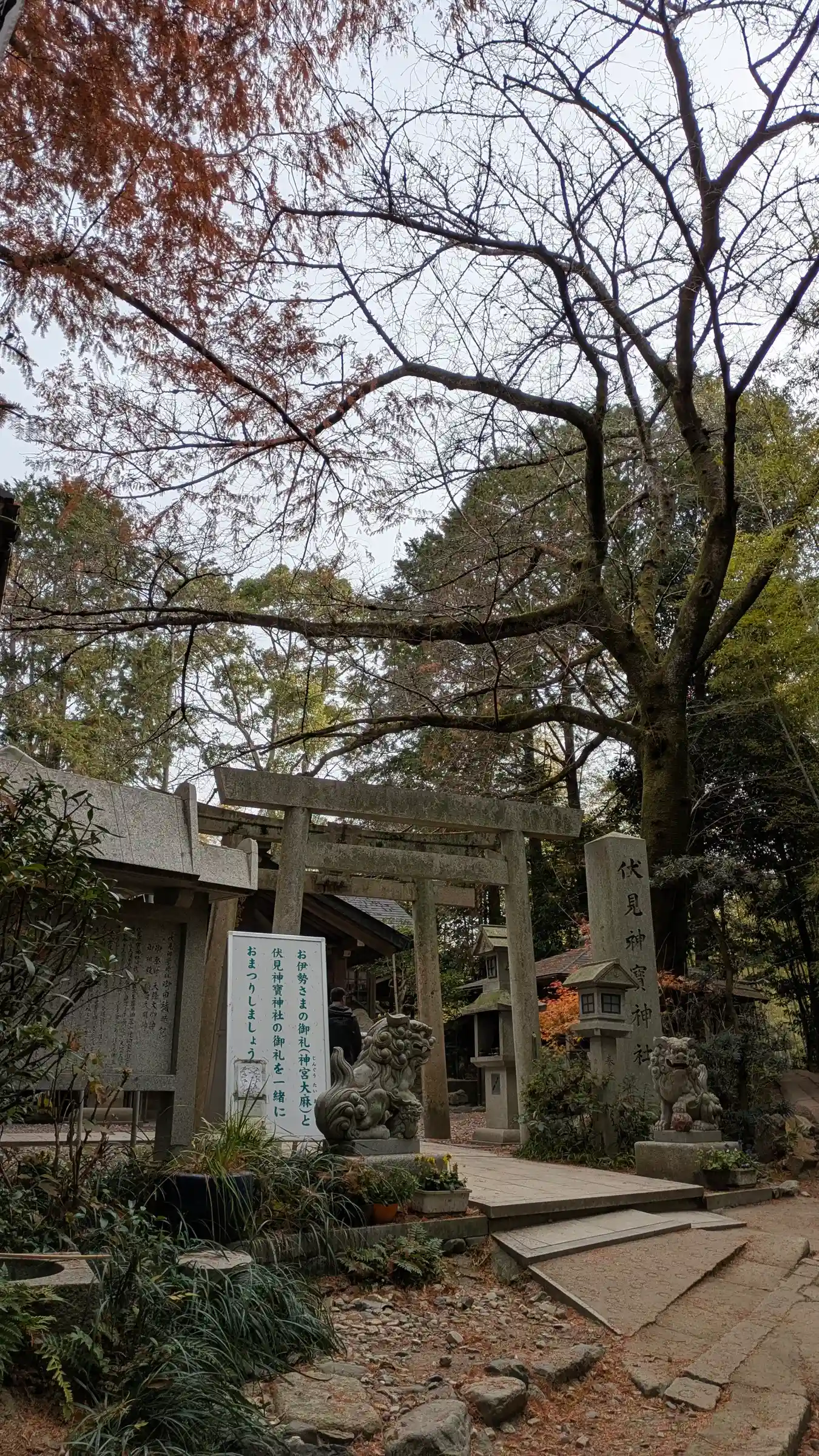 千本鳥居を抜けて山道を進むと、賑やかさは消え静かな伏見神寶神社が見えてきます。