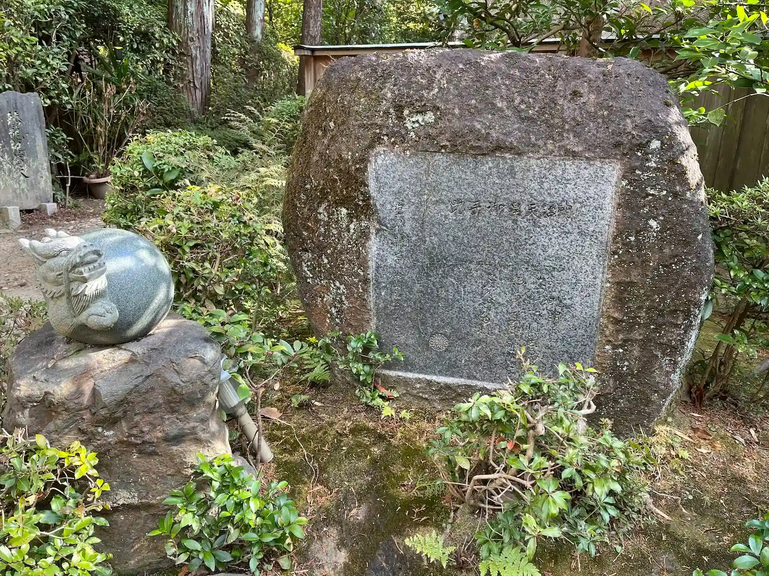 奥社奉拝所から熊鷹社へ向かう参道を外れた所にある。
