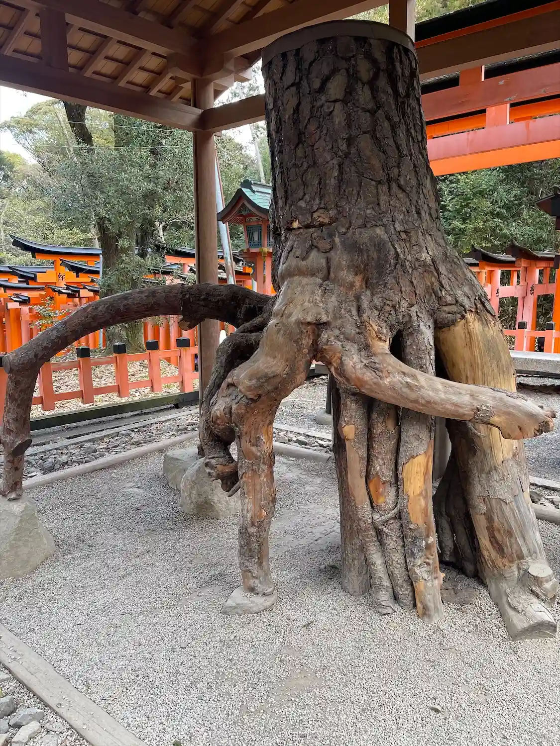 伏見稲荷大社の奥社からさらに鳥居をくぐってお山を上がっていくと ものの5分もたたずに 根上りの松と…
