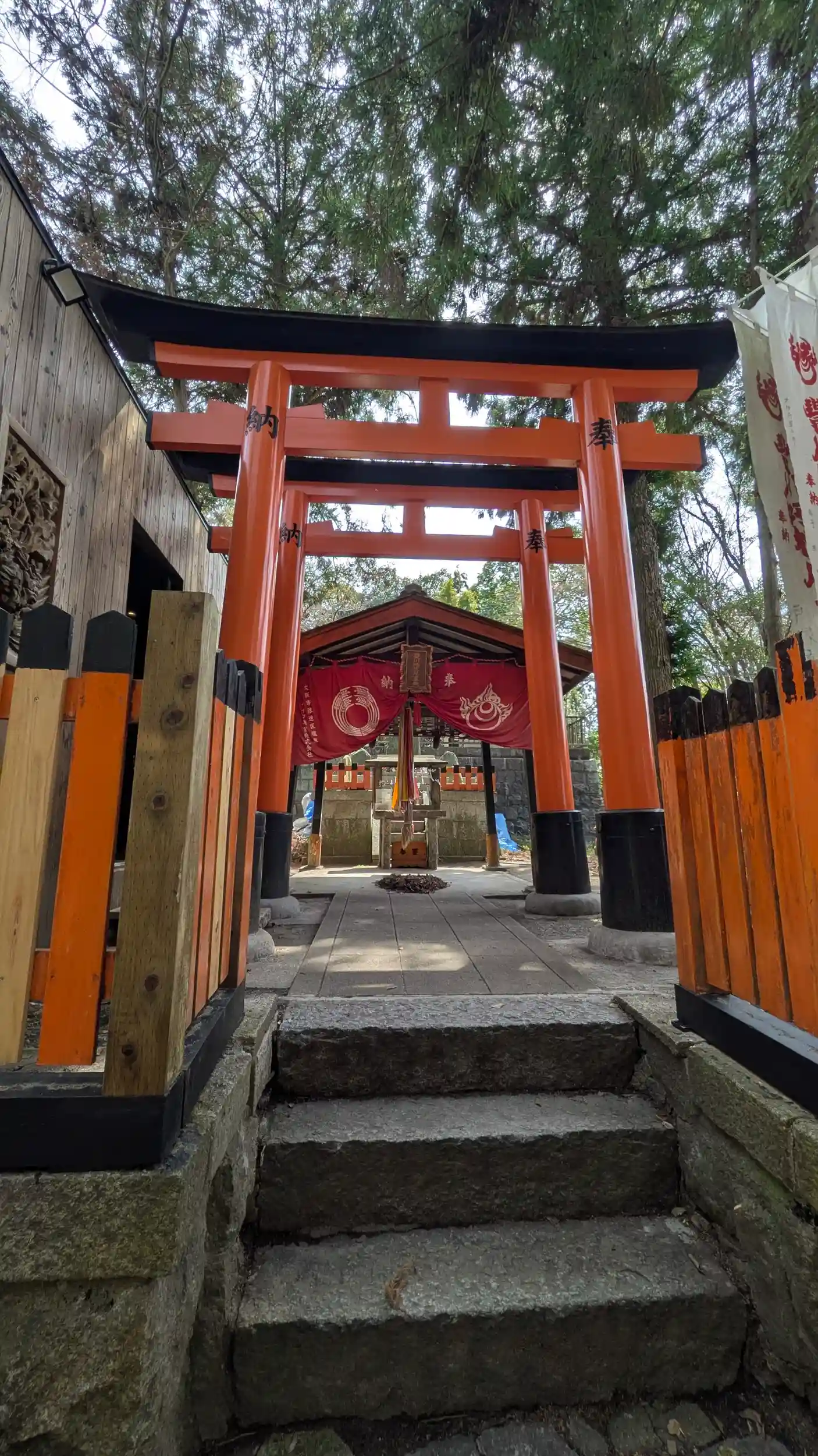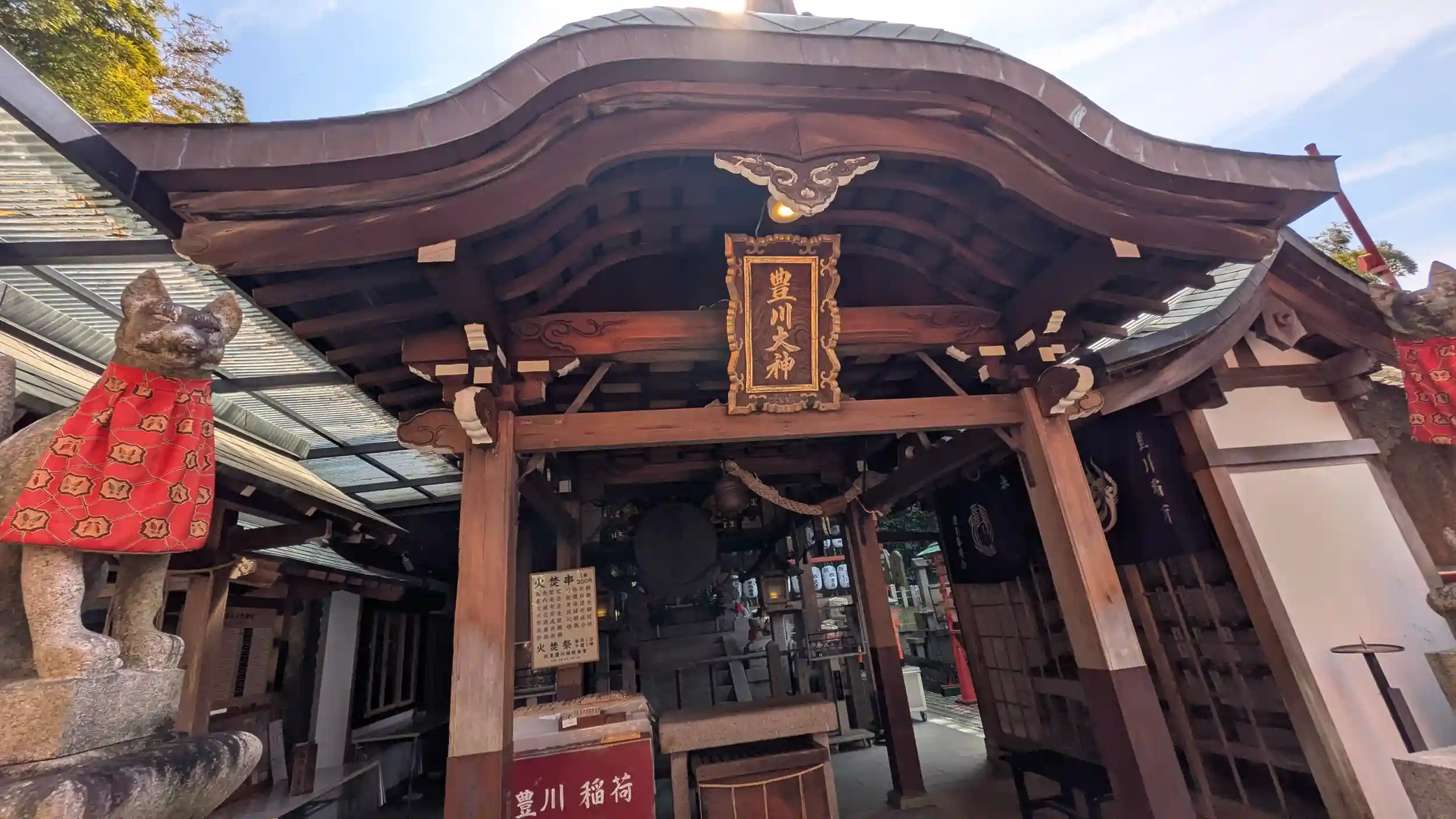 進んで行くと豊川大神の幟がみえ、鳥居がありました。境内には火焚祭の案内に豊川稲荷本宮とあり、本殿には御心鏡の形に作られた豊川大神の石塚が鎮座しており、他の石塚やお社とはかなり異質な感じがしました😅左手には授与品の一覧があり、奥に社務所のような感じの建物があったのですが授与品はおもり所(次の店)と書かれていました。お詣り後、次の店へ向かうと狭い店内に外国人がいっぱい😲しかもよく見たらみなさん女性なんですね。東西問わずこういった土産物好きなのはやっぱり女性のほうが多いんですねぇ😅御朱印は書置きのみのようでしたので拝受いたしました😊