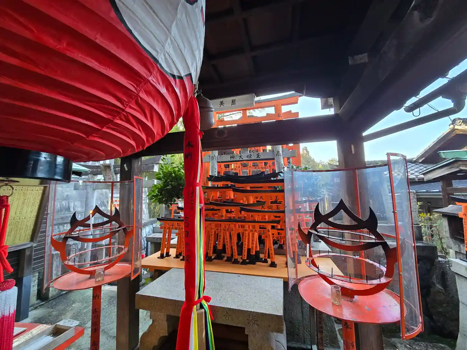 伏見稲荷大社の千本鳥居をくぐって帰る途中で腰神守護の幟が目に入りお参りしました。