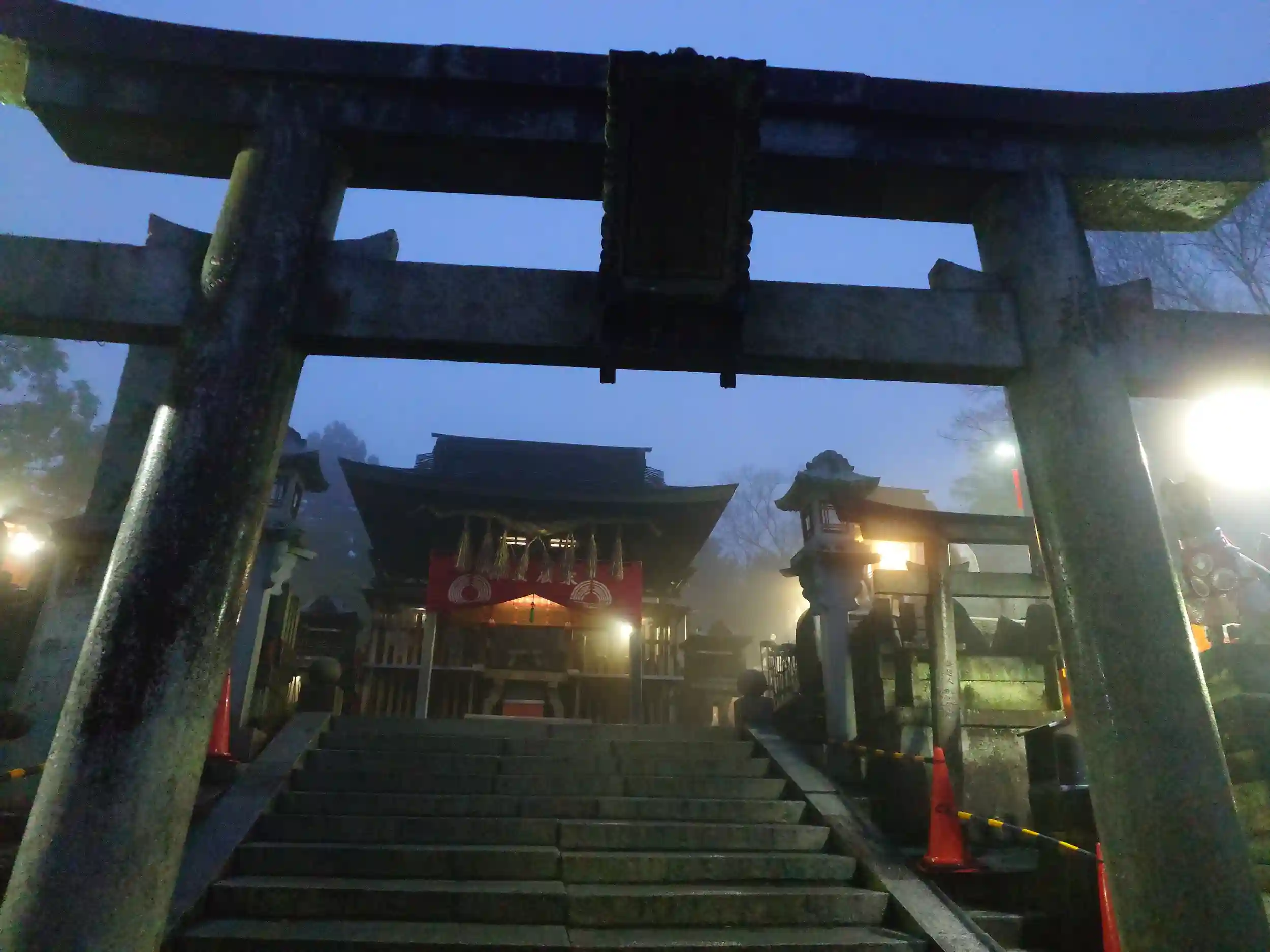 社殿です。若干霧がかっています。