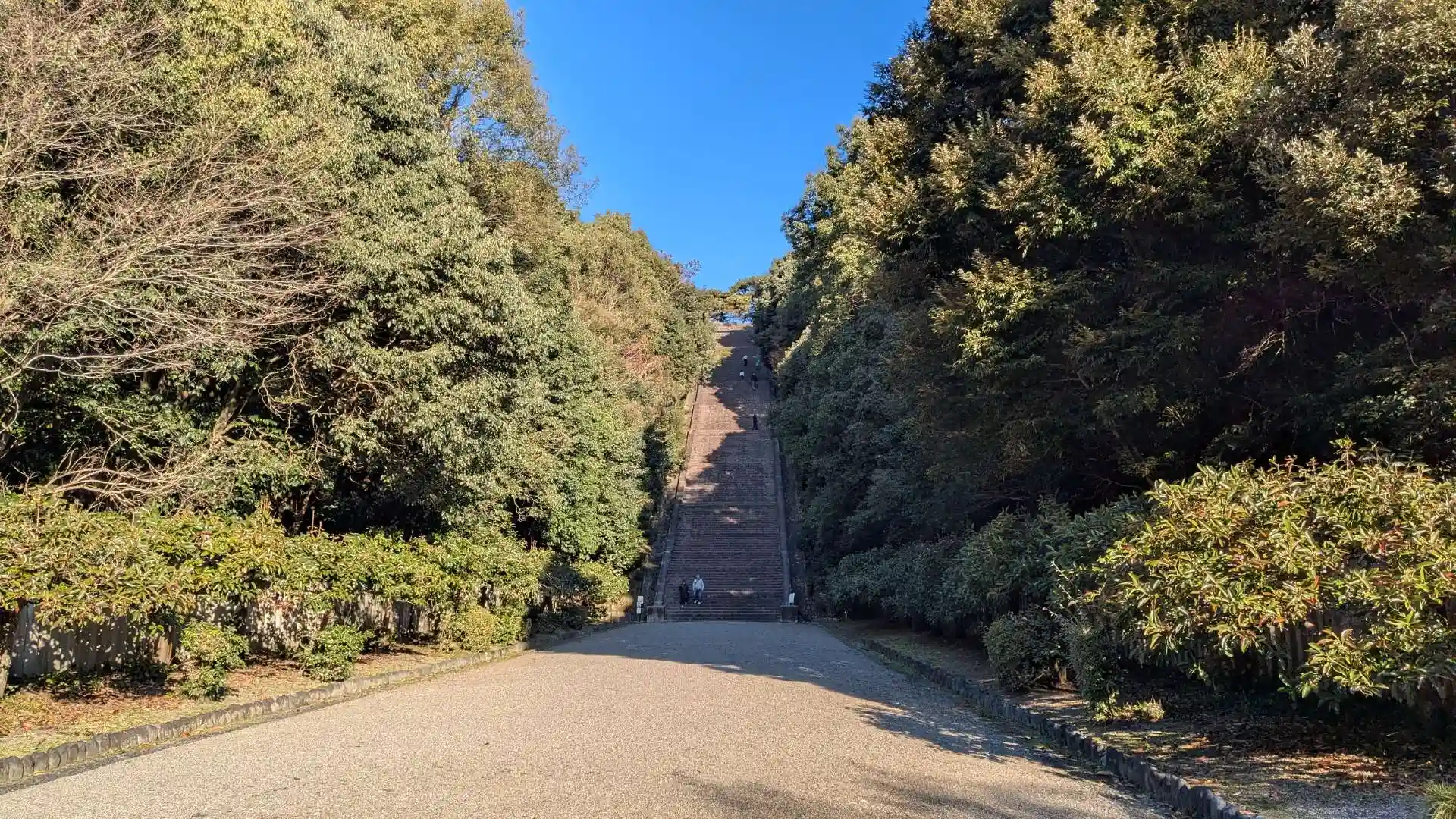 幕末に即位し大政奉還、王政復古、明治維新という日本の歴史的転換期のなかで新しい国家の象徴となった明治天皇。陵のすぐ傍には崩御した際に殉じた乃木希典将軍と乃木静子夫人を祀る乃木神社があります。参拝に際して1番驚いたのが長い大階段。ピラミッドかと思うくらい高くて登っている途中からもう足がクタクタ。ようやく登り切ると桃山や宇治方面の景色が広がっていてとても綺麗。まるで今も日本を見守ってくださるような光景です。また現在御陵のある場所は木幡山伏見城時代の伏見城が建てられていた城跡です。関ヶ原の戦いを目前に徳川家康の忠臣鳥居元忠が石田三成率いる西軍と全滅するまで戦い抜き東軍勝利の大きな要因となった伏見城の戦いが行われました。明治天皇の陵に参拝した後は桃山陵墓監区事務所へ。ここでは管轄の天皇陵の御陵印が頂けます。御朱印とは違い自分で押さなければなりません。伏見桃山陵と先日に参拝した光孝天皇の後田邑陵の印を御朱印帳に押しましたが緊張しすぎて一度失敗。改めて普段から御朱印を間違いなく書かれている神社仏閣の人達は凄いなと思いました。