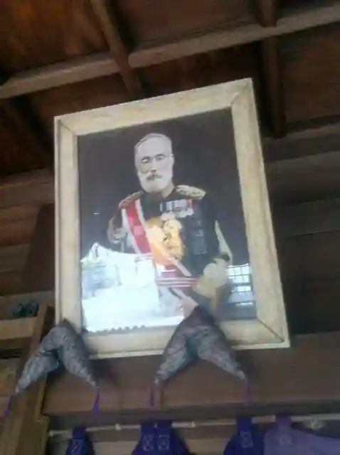 日用品から軍服、外套、写真や遺墨がきれいに並ぶ館内。ここが神社の境内にあることをつい忘れてしまうが、神様として祀られている一角で古めかしい写真や軍服を眺めていると、やはり違和感をおぼえた。死後100年は経過しているとはいえ、遺品や写真は故人の生前を知っていたり切り取っているものである。神様にしては、生々しい。