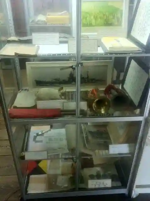 境内の片隅に、乃木の遺品や当時の資料が陳列された土蔵がある。館内は無人で、入り口脇にある箱へ拝観料100円を投げ込む。