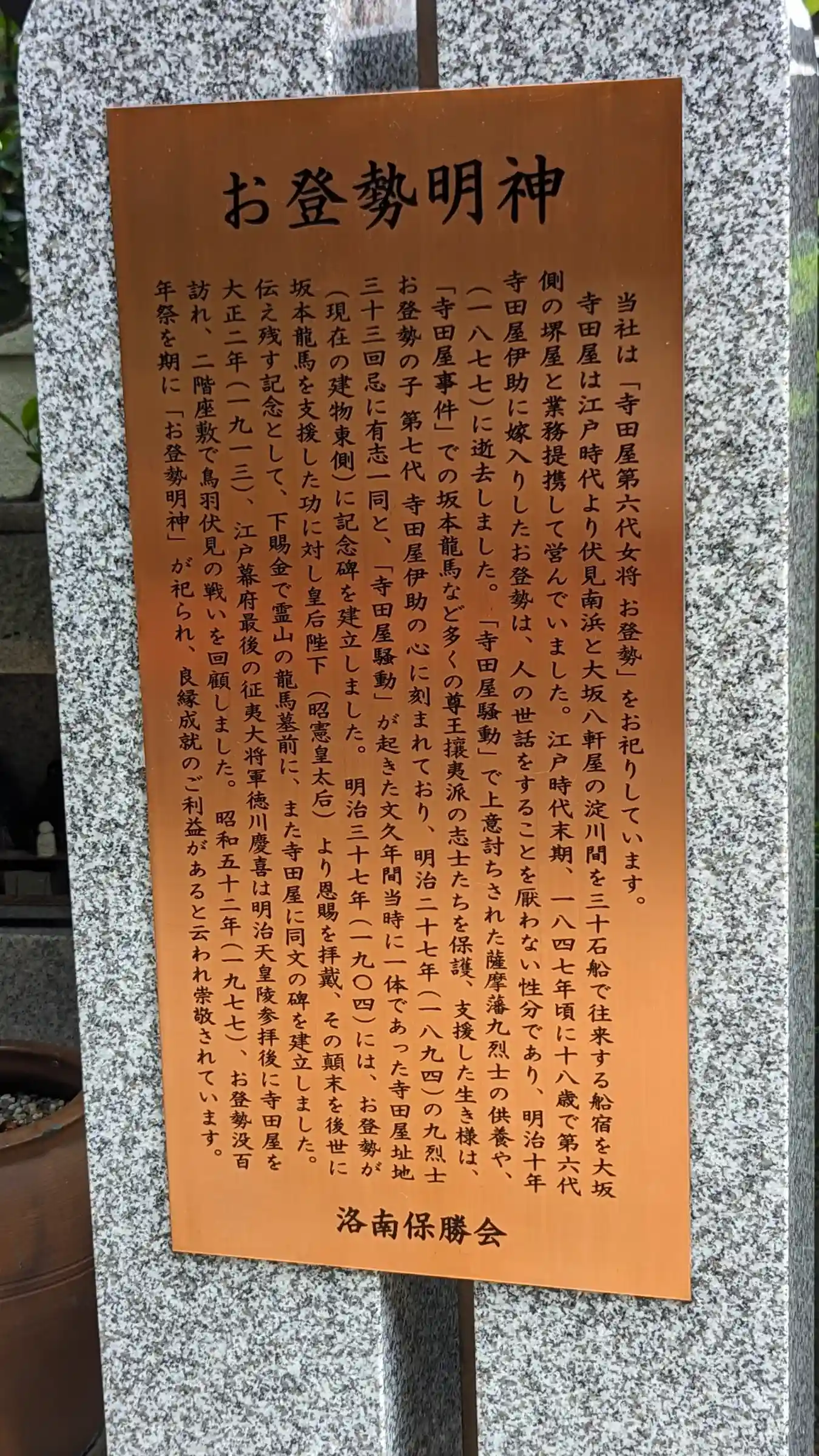 その中に建つお登勢明神。かつて竜馬が世話になった寺田屋主…