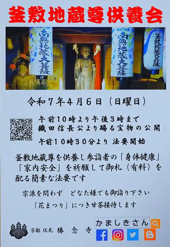 令和7年4月6日(日曜日)令和七年 釜敷地蔵尊供養会を行います。