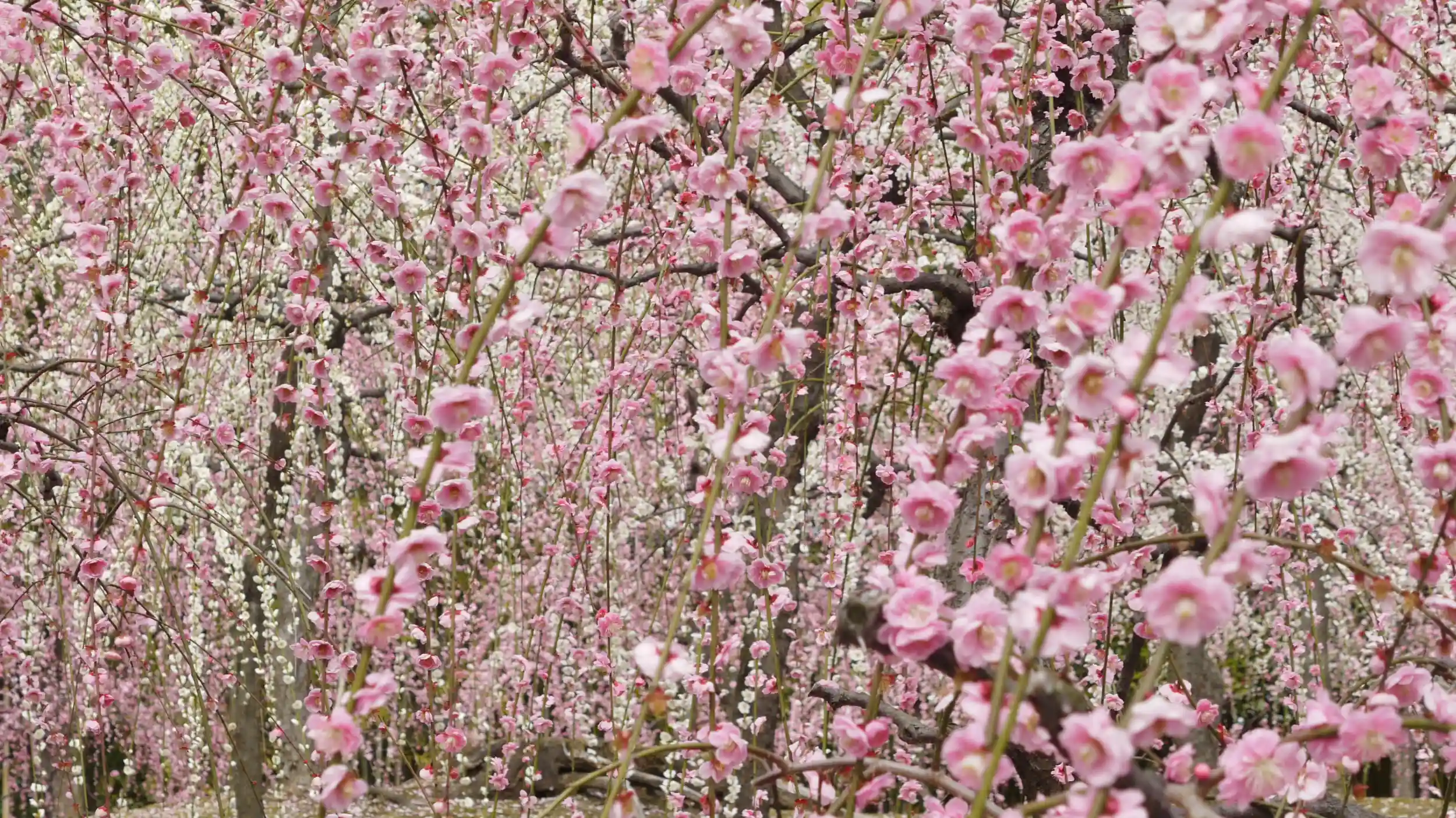 見渡す限りの満開のしだれ梅はとても見事。