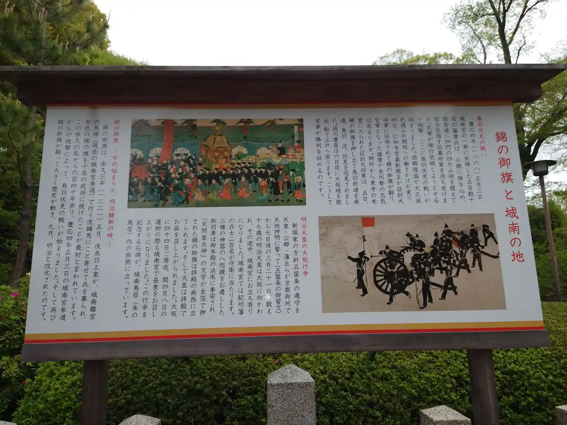 錦の御旗と城南の地 説明書き