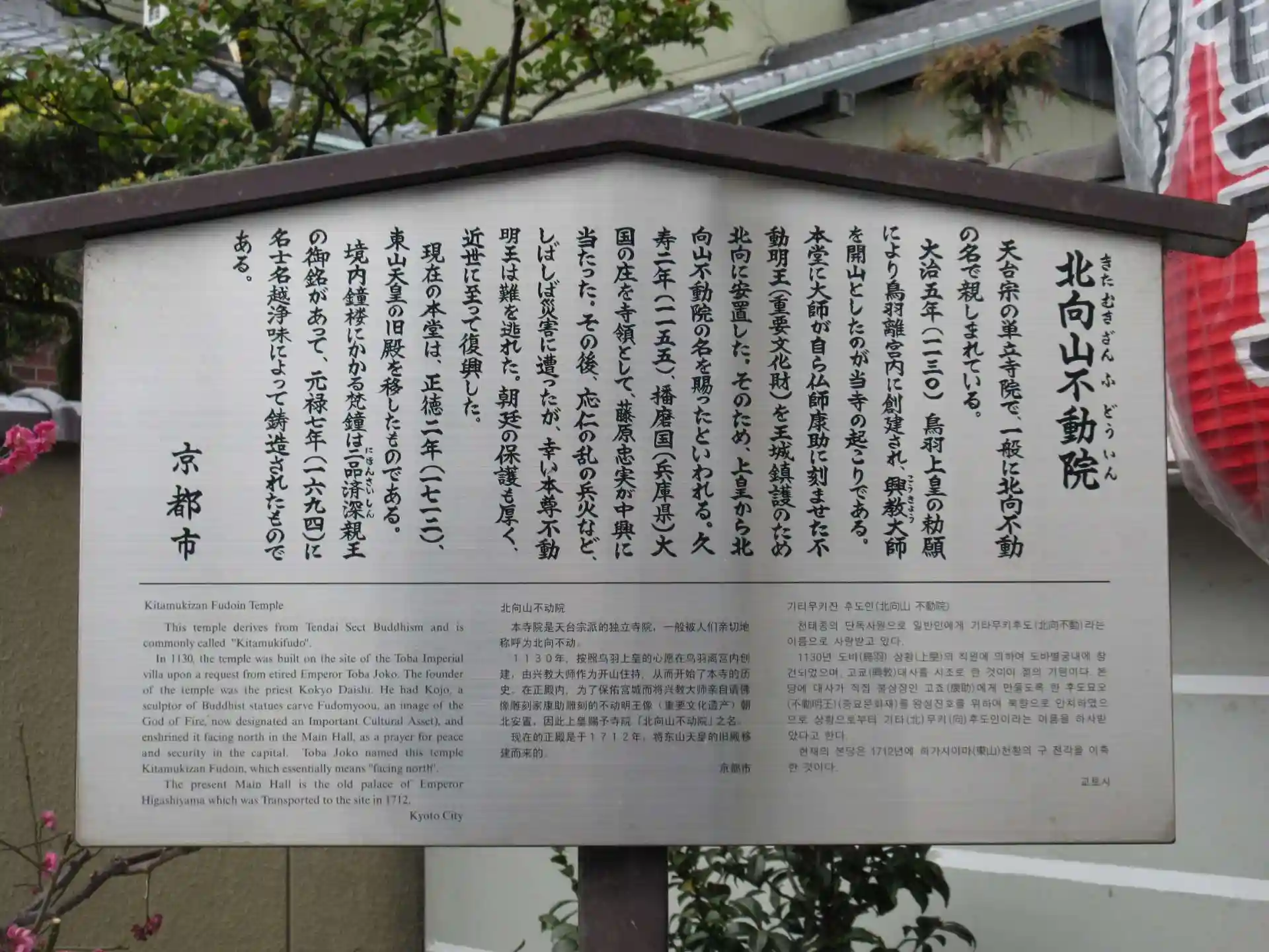 きたむきざんふどういん