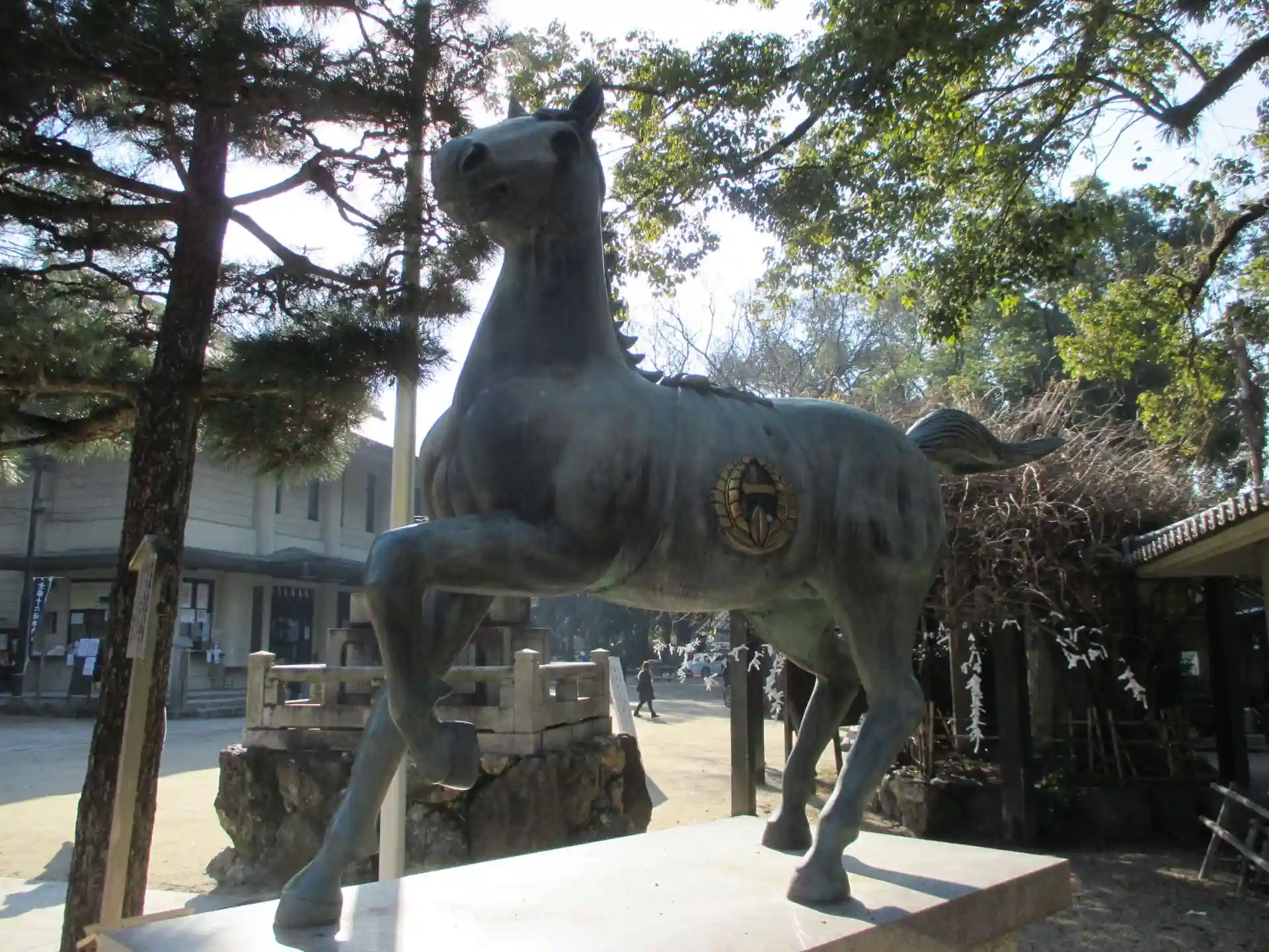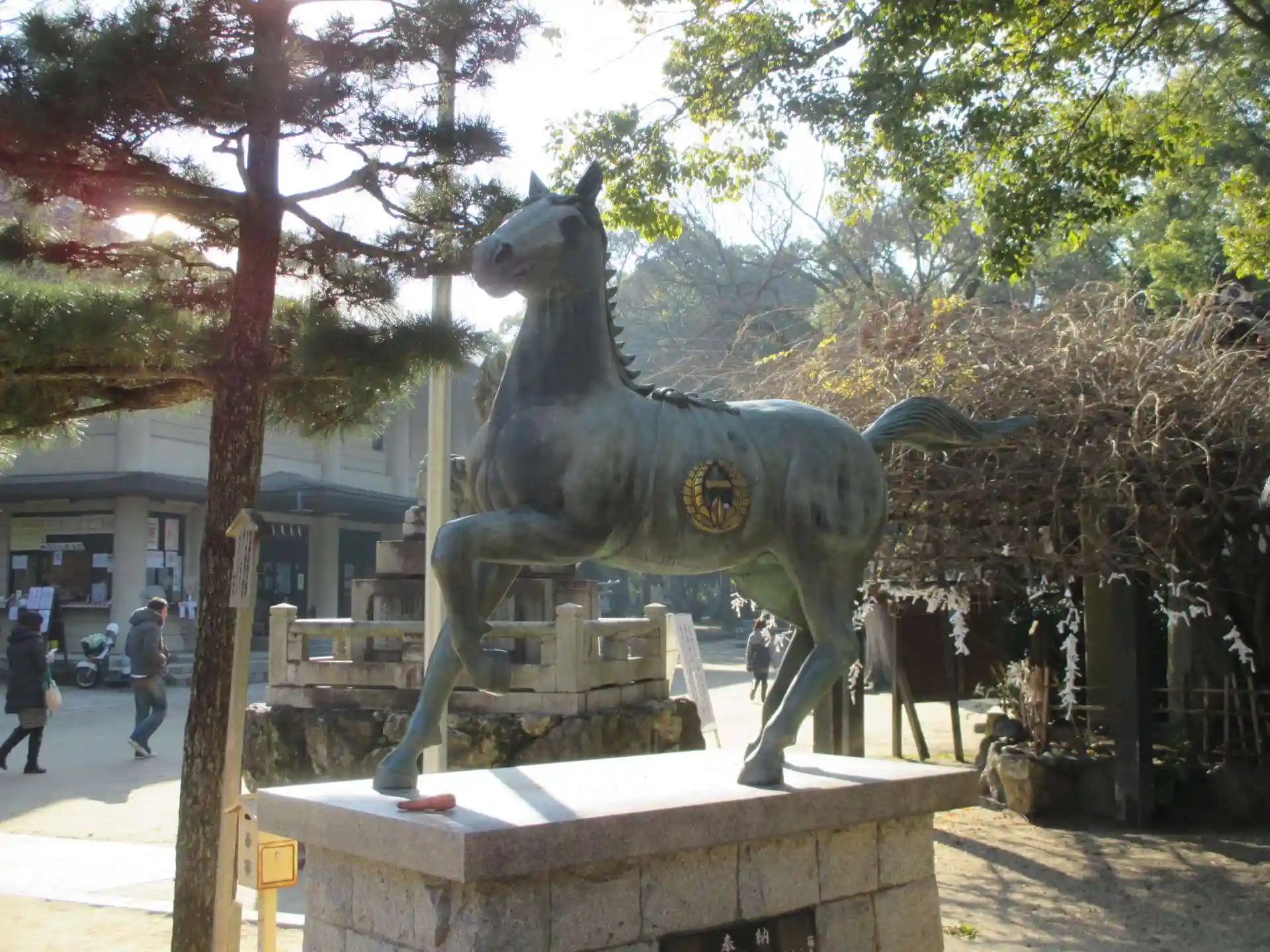京都教育大学の前を通り過ぎると、藤森神社の入り口。ここは、勝負の神社であり、馬の神社としても有名。どでかい「馬」の字と左馬の絵馬が飾られてます。舎人親王も祀られていて、学業の神様でもあります。馬の銅像の足元ににんじんが置かれているのがなんとも。