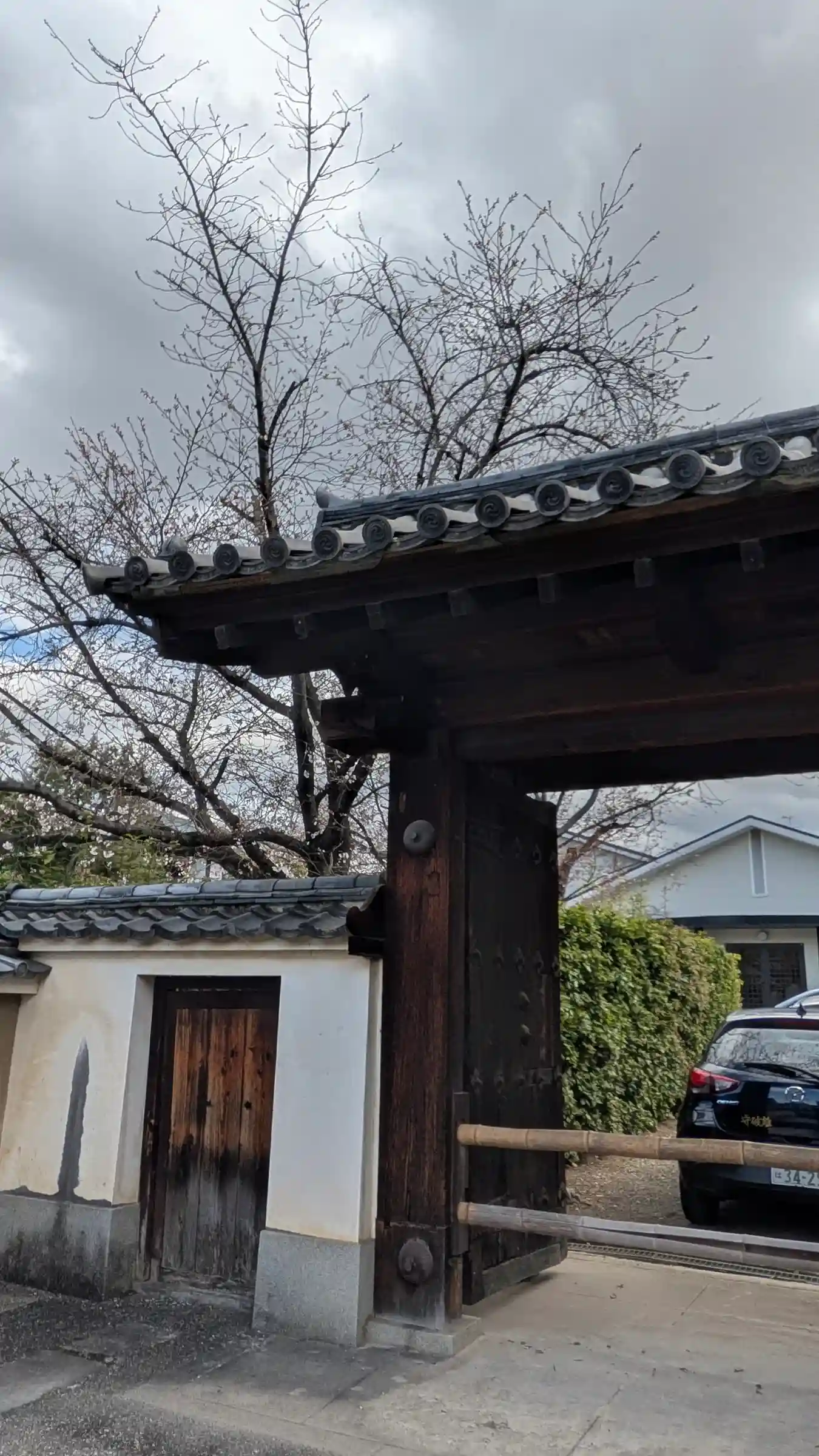 正面の山門は閉まっていますが、左の門から入ります。