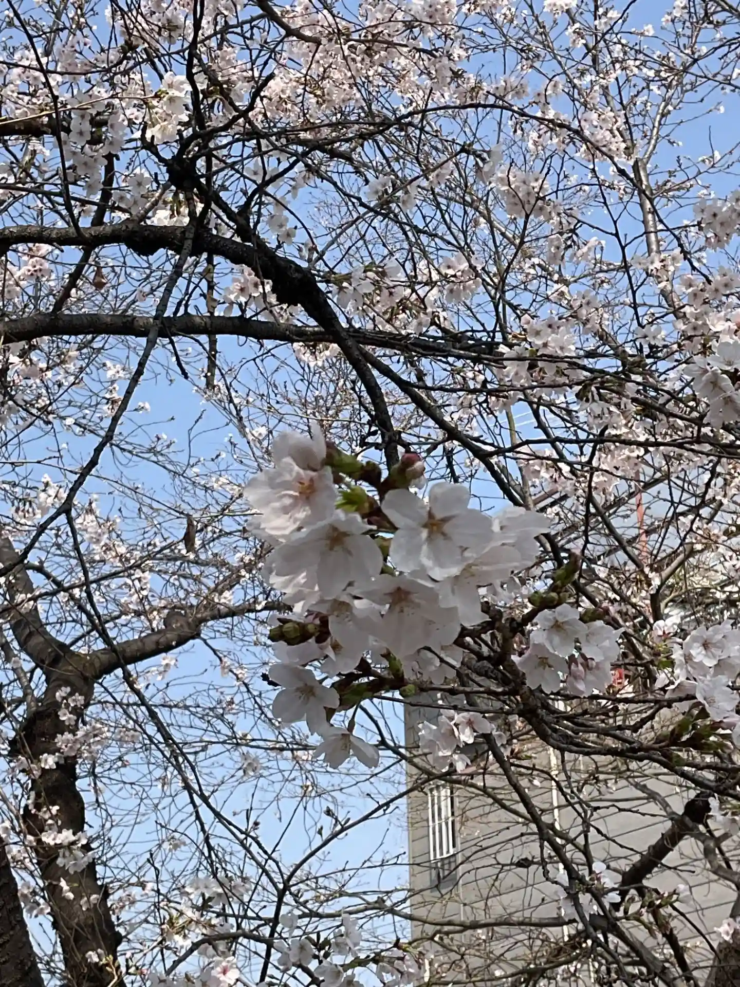 ソメイヨシノの鮮やかなピンクとは違い、花びらも小さめの白に近い淡いピンクの控えめな桜です。