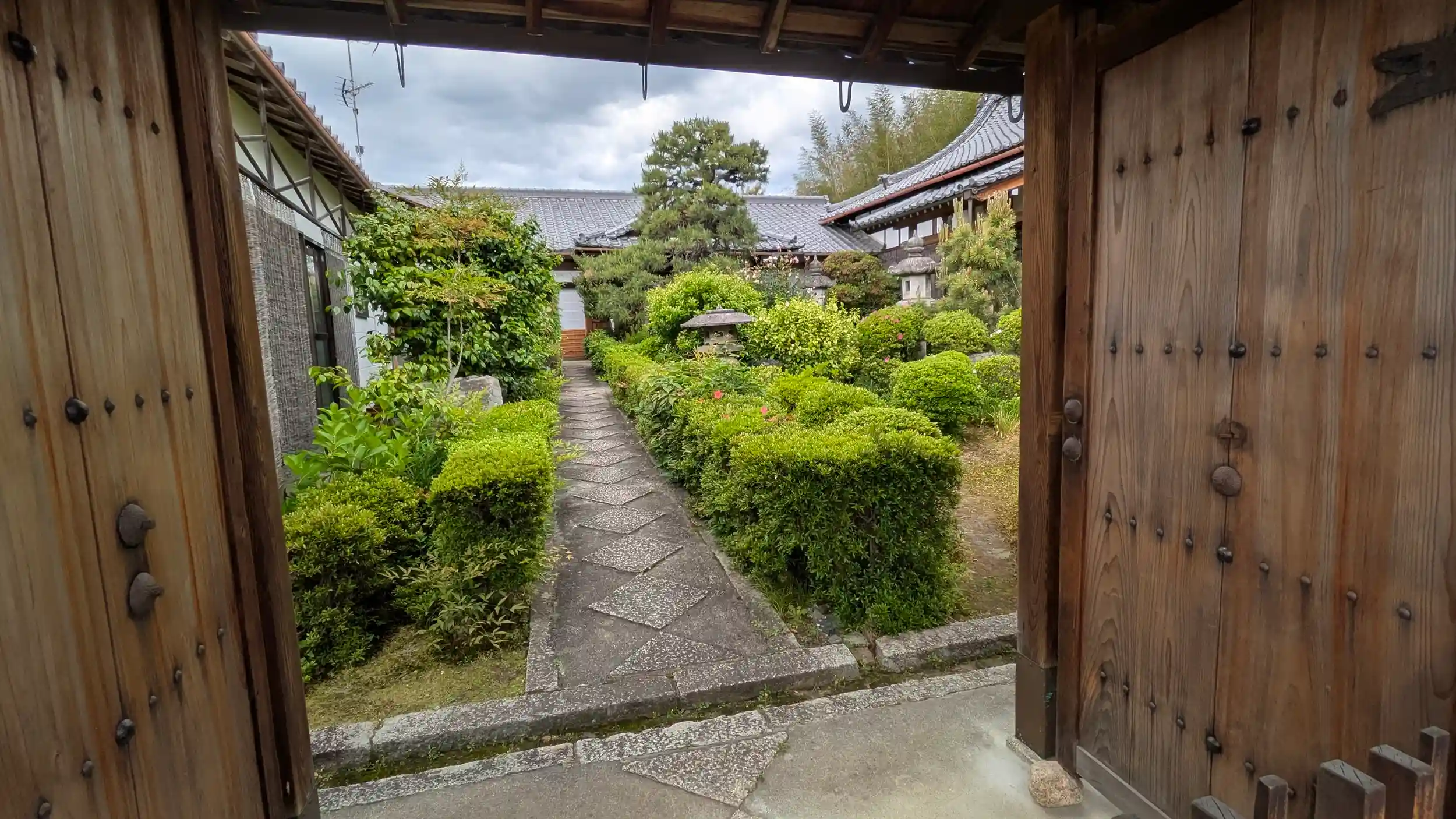 大雲寺と日像上人荼毘塚の間にある寳塔寺塔頭。寳塔寺中興の祖である日銀上人の弟子、日随上人(大雲寺三世)がその弟子の日謄上人に職を継がせ、隠棲したのが起源のよう。その後も大雲寺住職の隠居所だったようです。山門にインターホンがあったので押してみると奥様が対応してくださいました🤗御首題をお願いすると境内へ案内してくださりました。御首題はお上人がお書きくださっていたようでその間奥様としばし雑談。御首題を拝受して特別公開2塔頭へ向かいました😊