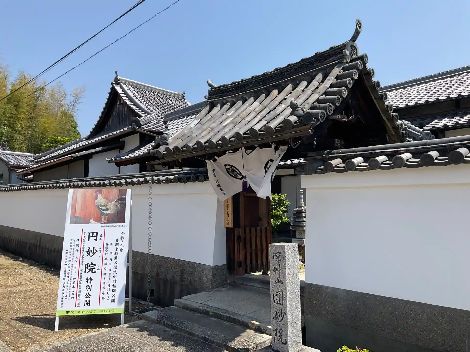 大雲寺とともに宝塔寺の塔頭寺院の一つで、大丸百貨店を創業した下村家の菩提寺で、本堂は一段高い上段になっており、かつては親族だけしか入るのが許されなかったそうです。また、本堂には鶏が描かれた杉戸絵があり、伊藤若冲の作と云われています。