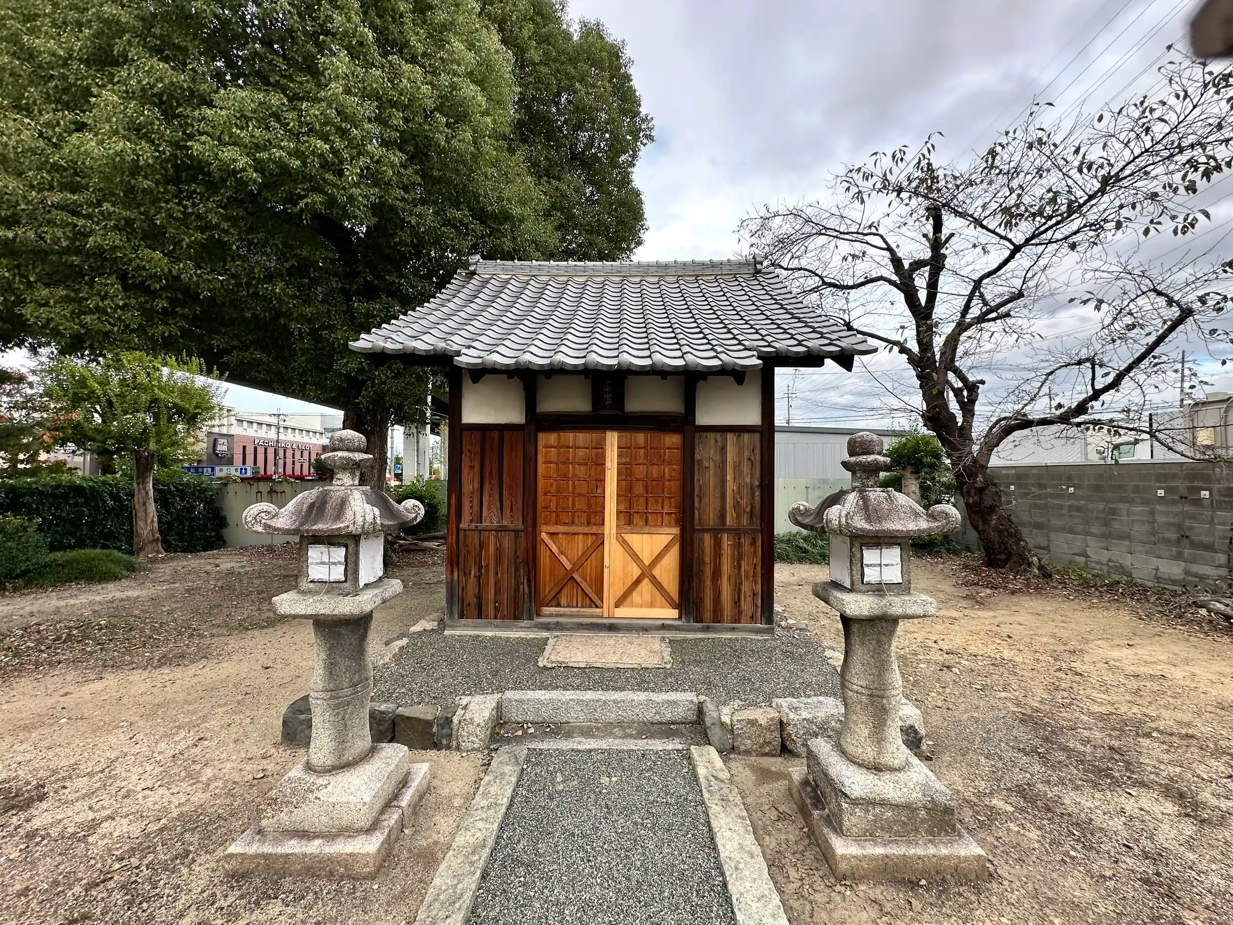 ご祭神 大国主命、三栖神社の近くにあり普段は高速道路を使うので、全く見たことがありませんでした、境内は簡素?石灯籠と本殿を覆う覆い屋がポツンと建っているだけです。ご由緒等も一切不明