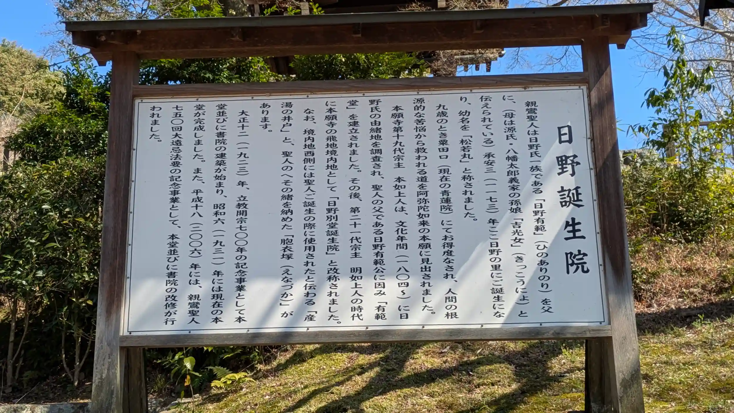 親鸞聖人御誕生の地である日野誕生院へ。浄土真宗に置いては聖地であるのに間違いはないのだがやはり立地が・・・なのでしょうかね😥他に参拝者もおらず。真宗寺院を周っている方にはちょっと違和感があるかもしれない境内で中門から本堂には回廊をめぐらし、中庭には白洲が敷かれ真ん中に燈籠。由緒によると平安時代の建築様式によって建てられたのだそう😲親鸞聖人の御舊跡であるので見どころもたくさん・・・といいたいところなのですが産湯井や胞衣塚(聖人のへその緒を埋められた塚)は誕生院保育園敷地内にあるため拝観できません😥残念ですが仕方ないですね・・・