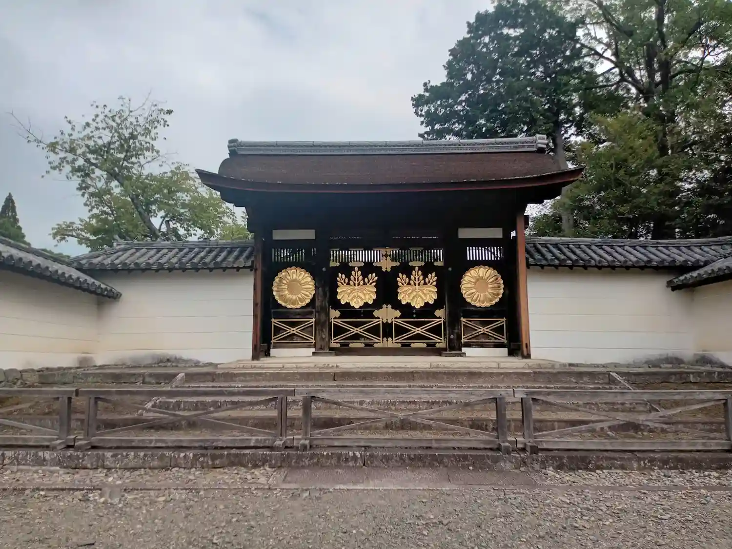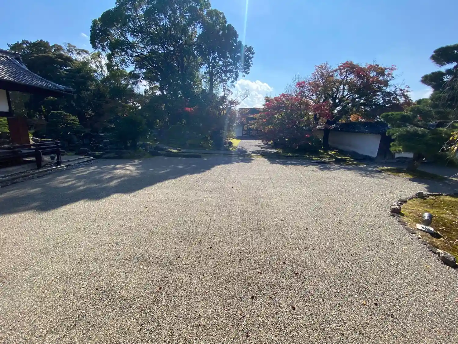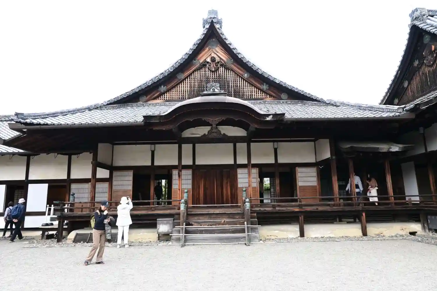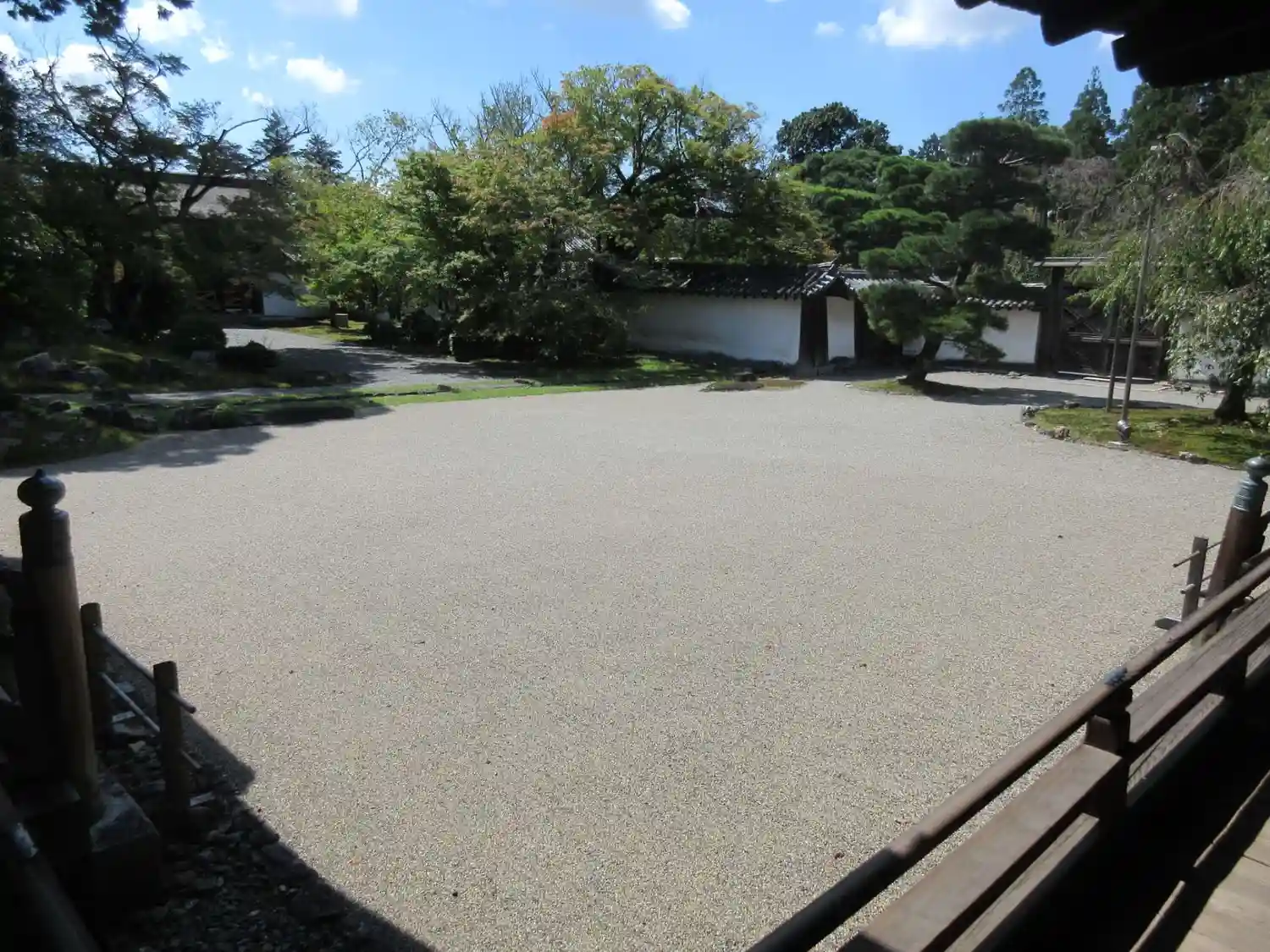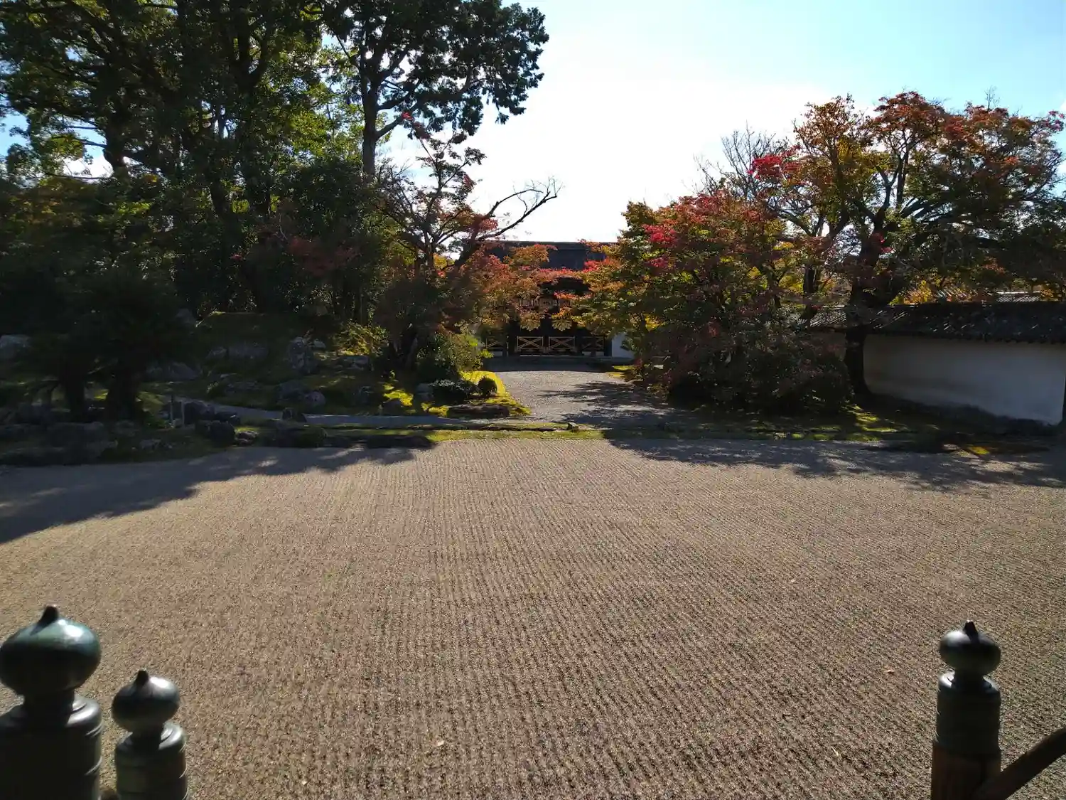 左手は<葵の間>、<秋草の間>、<勅使の間>の3つの部屋が並ぶ建物。3つの部屋は、国指定の重要文化財。右手は国宝<表書院>の側面。