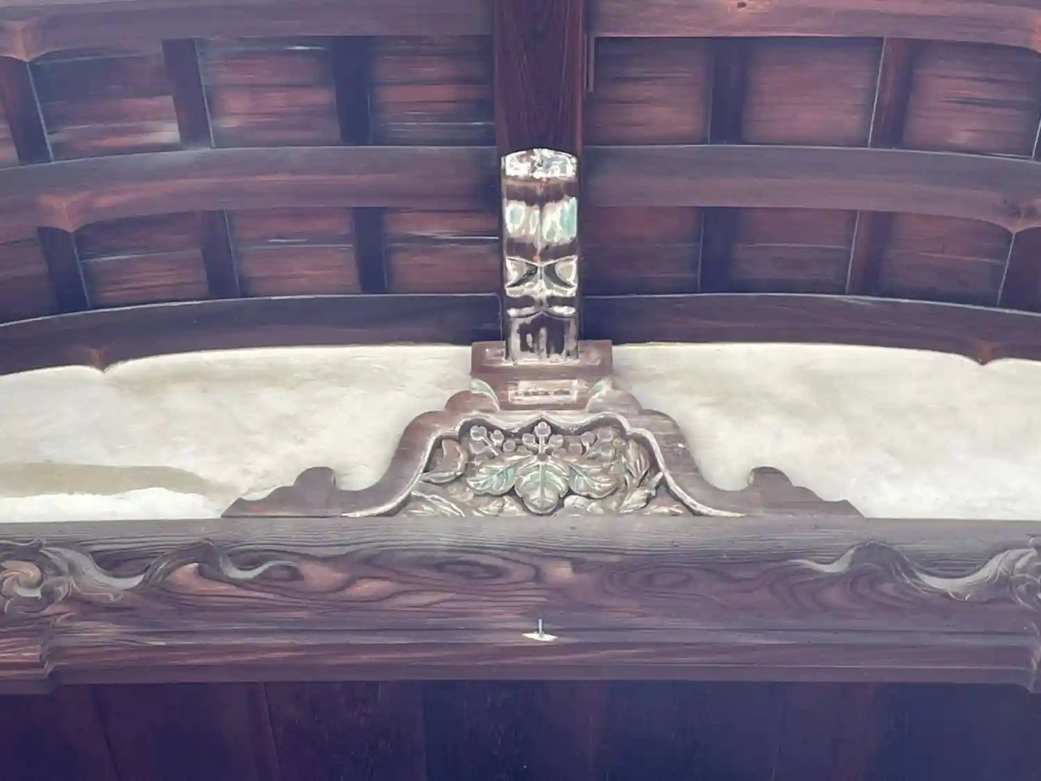梁にカラフルな彫刻が施されています