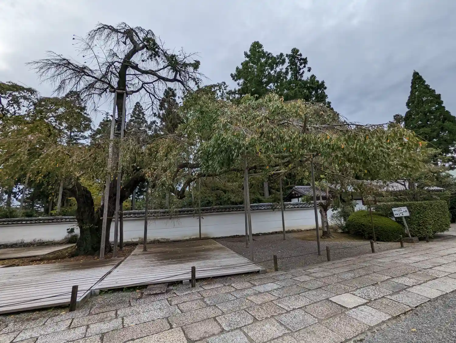 門を入ってすぐの大きな枝垂れ桜が、台風被害で枝が折れたそうです…