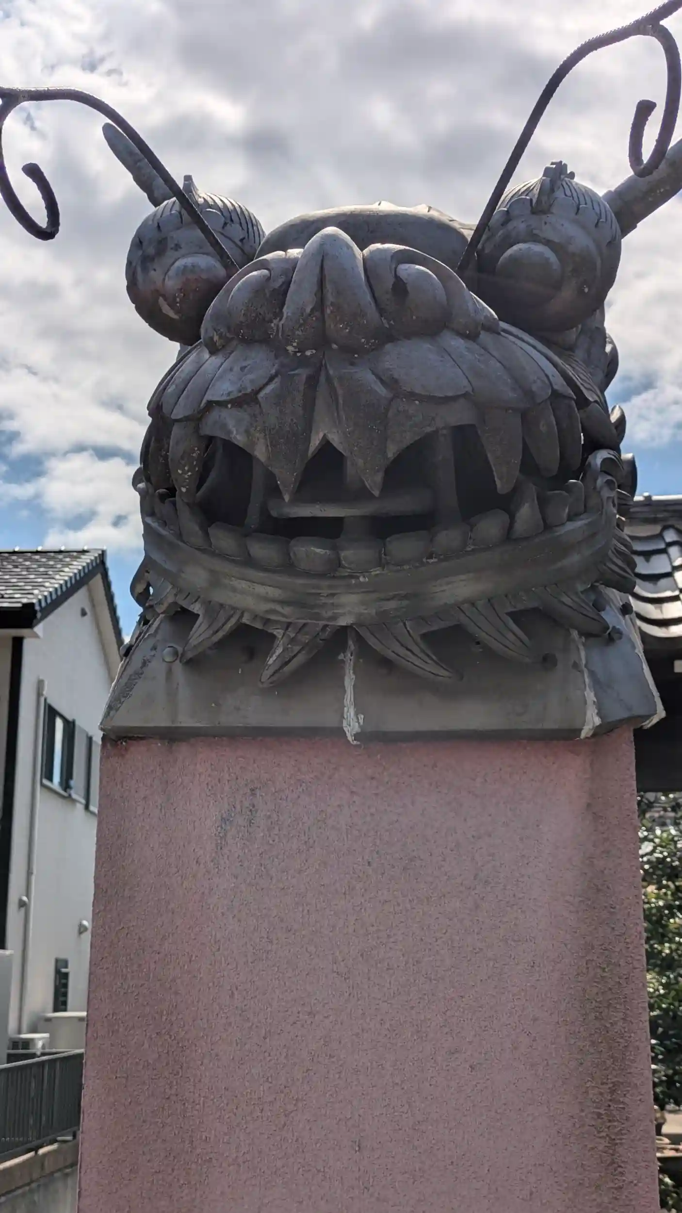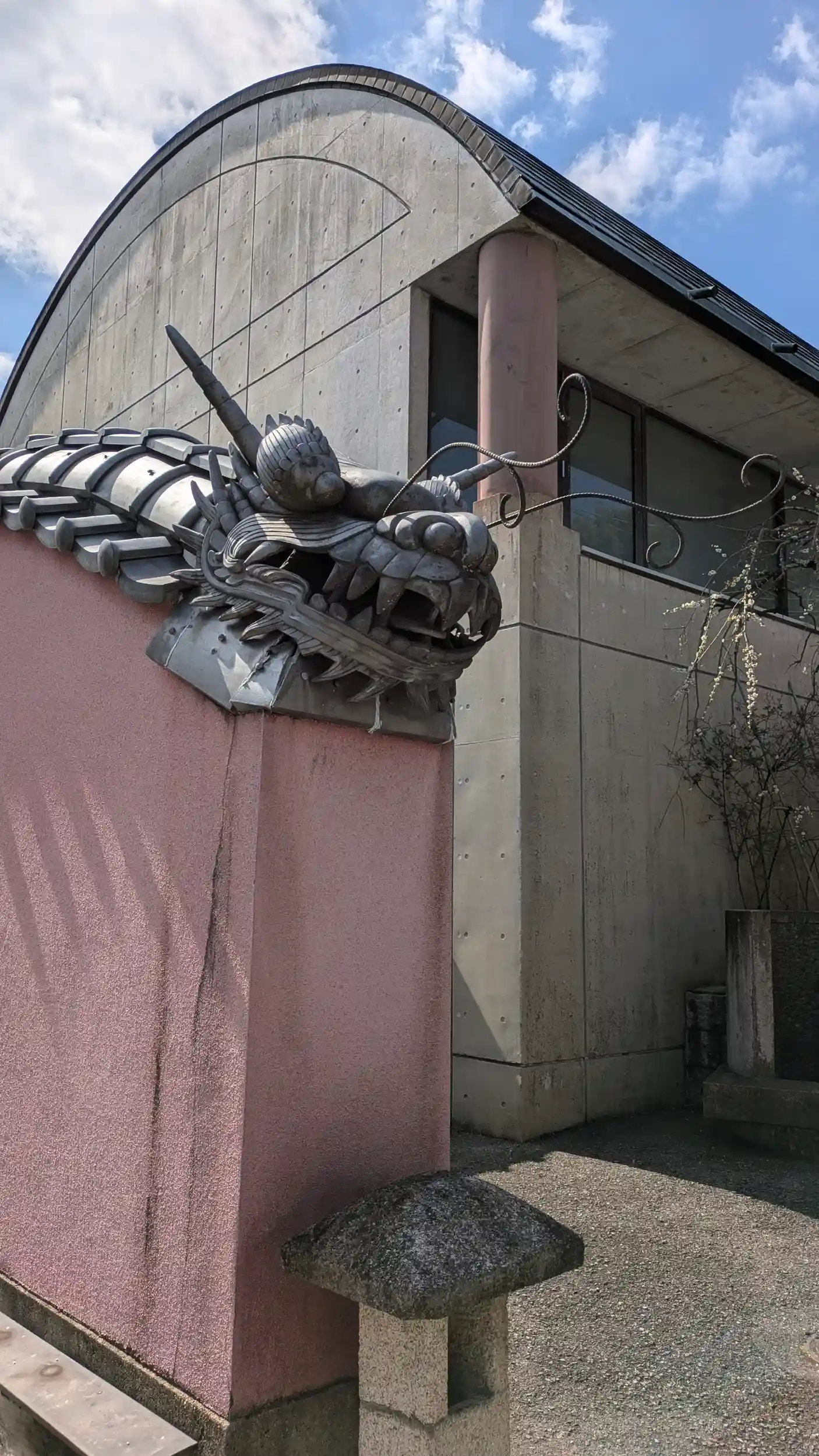 北小栗栖天神から南にある西方寺へ。寺院近くに行くと塀の先に大きな龍の頭が😲塀の瓦が龍の胴に見立てたあるアートな塀瓦です😊本堂もコンクリート製でちょっと京都らしさはないお寺ですね😅参道には花が植えられており、木瓜の花が綺麗に咲いておりました🤗インターホンを押してお伺いを立てましたが檀家寺院とのことでお詣り・御朱印はなしでした😫ネット情報で気になる記事があり、2012年の記事でしたがこちらの「ご住職が高口恭行さんという建築家であり僧侶でもある方で、現在、大阪市天王寺区にある一心寺の住職でもあります」とのこと😲一心寺って大阪でトップクラスの浄土宗の大寺院やん😲まあ確かにあそこは現代アート的なものが多々ありますのでガチの情報かもしれませんがなぜ兼務・・・?謎でしたが檀家寺院と言われればそれ以上聞きだすこともかなわずですね・・・