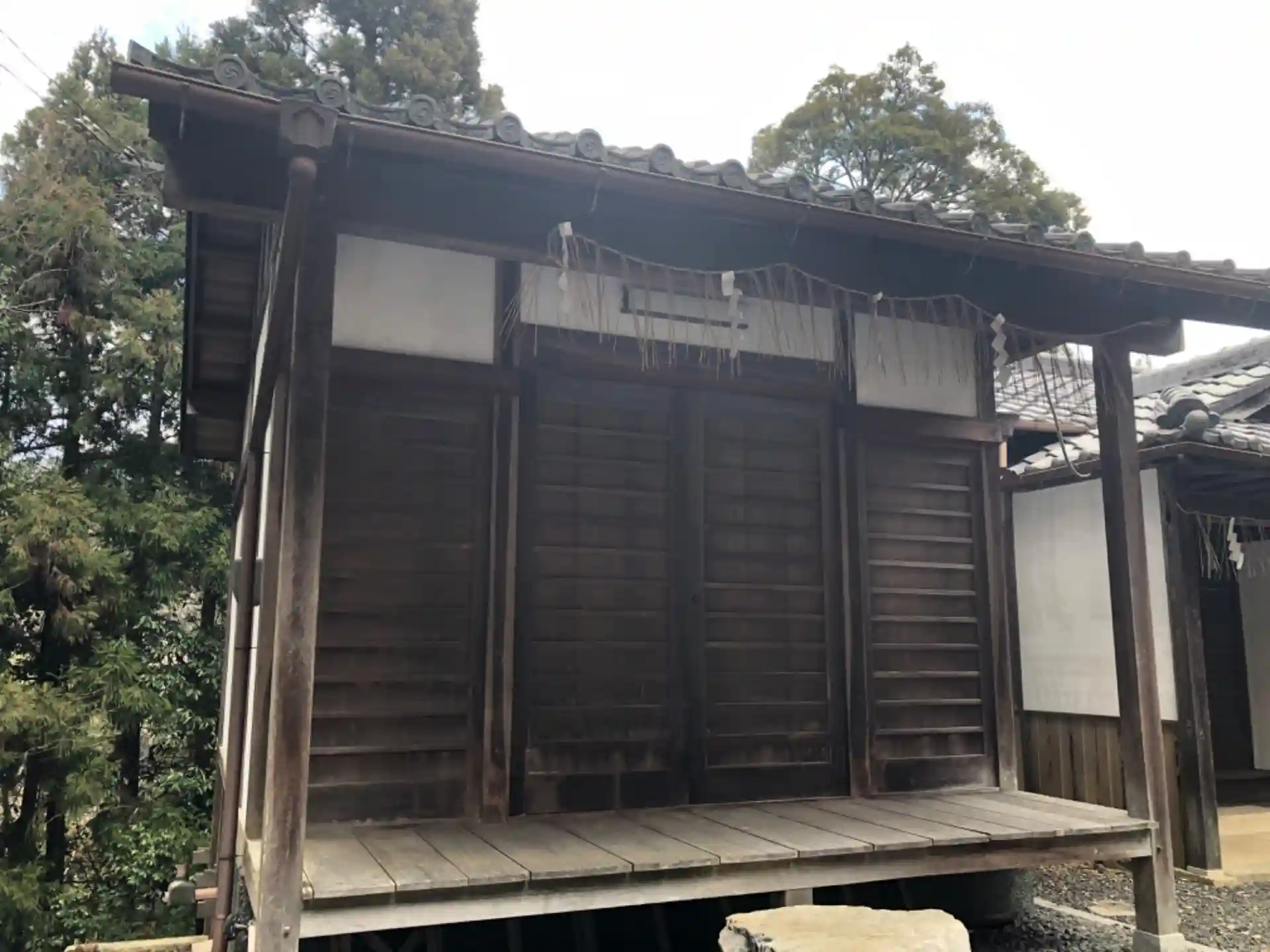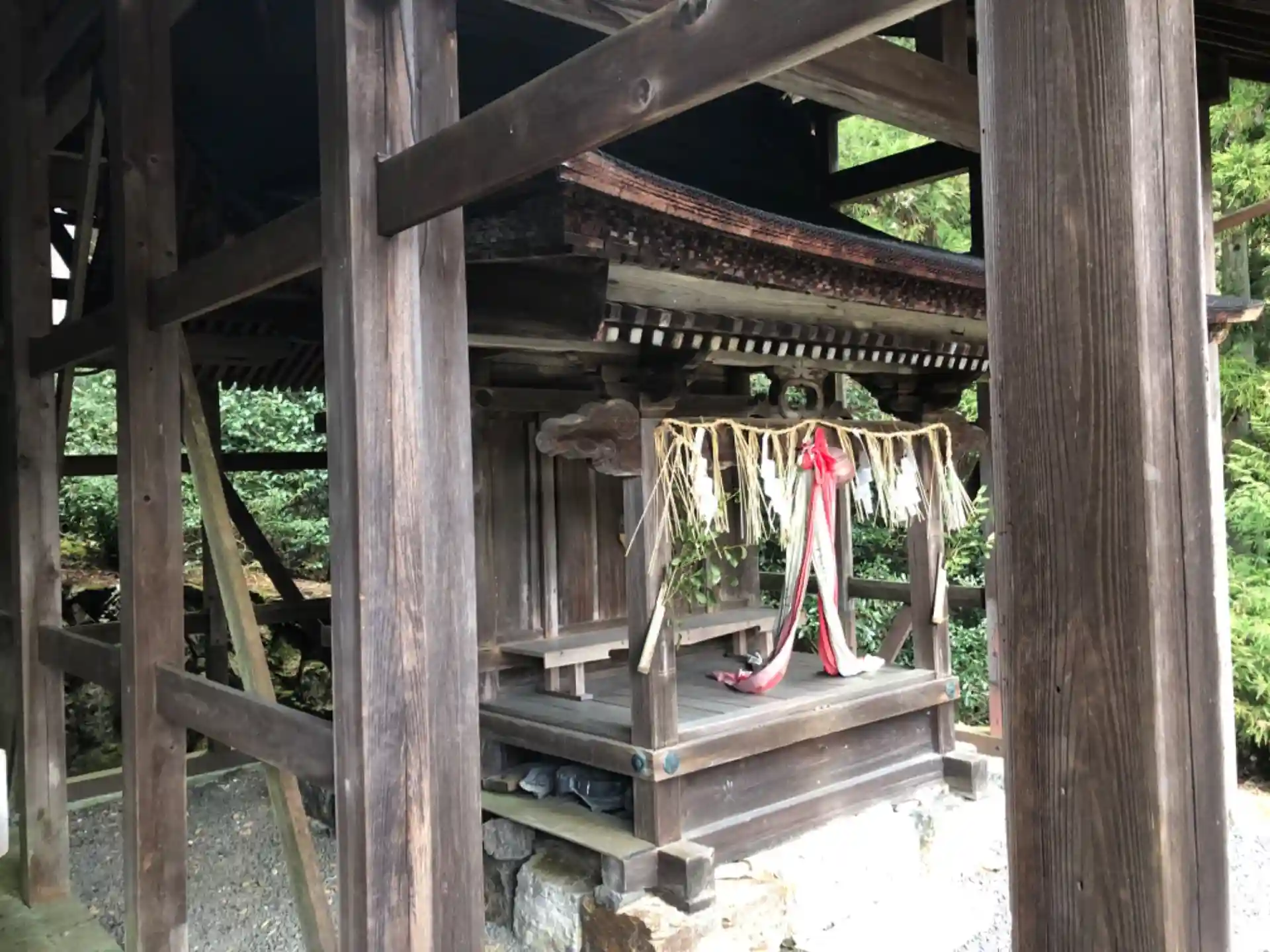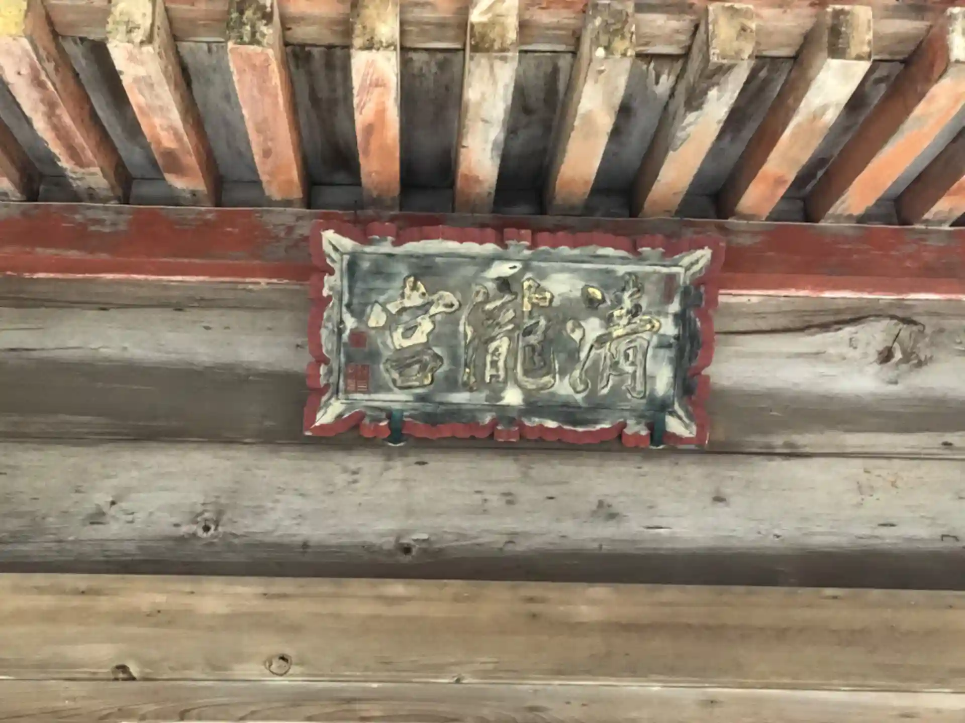 よく見るとうっすら朱色が見えますね。元々は色のある綺麗な社殿だったのかもしれません。