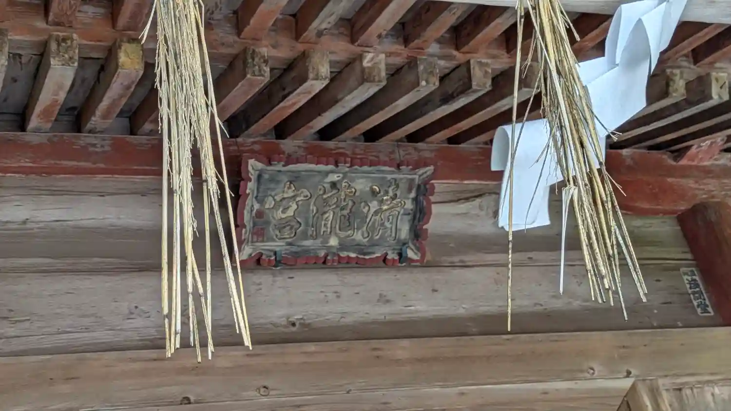 よく見るとうっすら朱色が見えますね。元々は色のある綺麗な社殿だったのかもしれません。