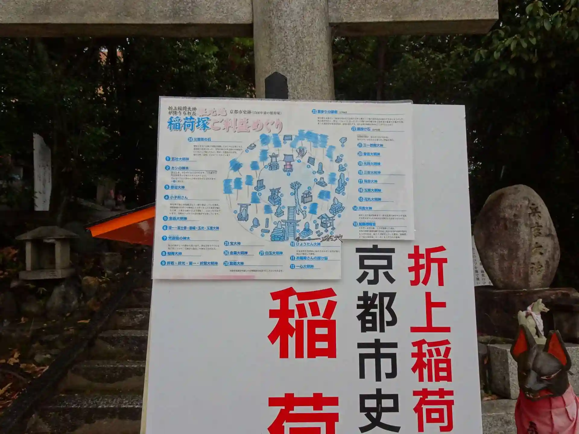 伏見稲荷奥宮ということでもあり、境内には稲荷塚という小山があり、この周辺に史跡が集まっておりました。案内図に従って廻っておりましたが、雨が強くなり、途中からバタバタでした。