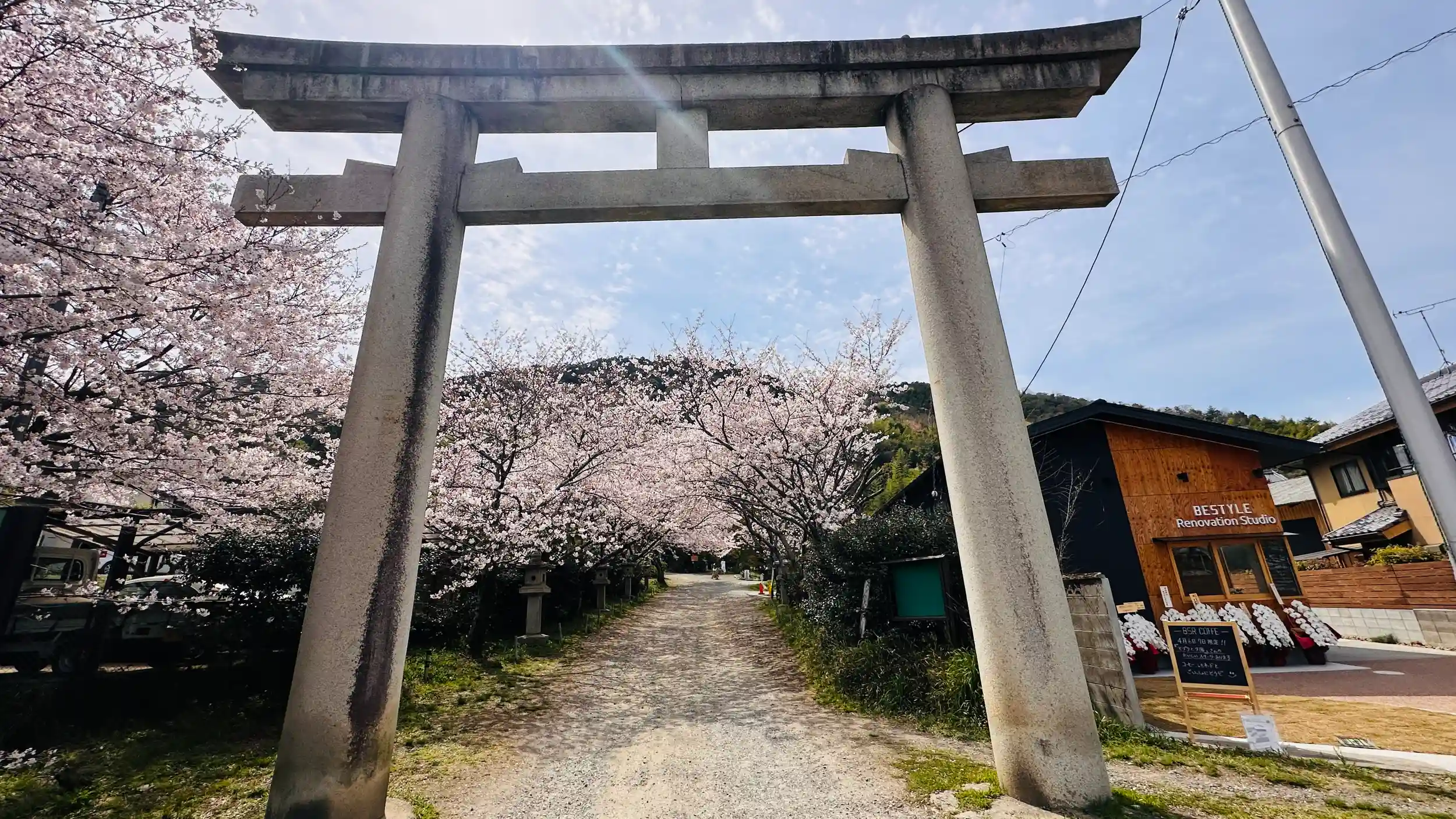 隠れた、桜名所です参拝者も多くなくゆっくりと桜を見ることができます、ここもやはり枝垂れ櫻系は散り始めていますが、それ以外はほぼ満開状態だと思います、鳥居を抜けると桜のアーチがお出迎えしてくれます。