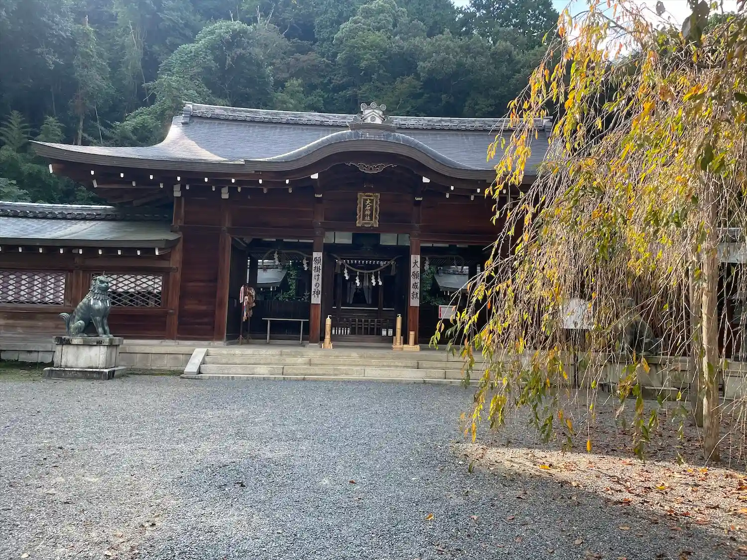 大石神社へ到着。枝垂れ桜の名所として有名ですが紅葉もなかなか捨てがたし。お隣の岩屋寺も紅葉の穴場な…